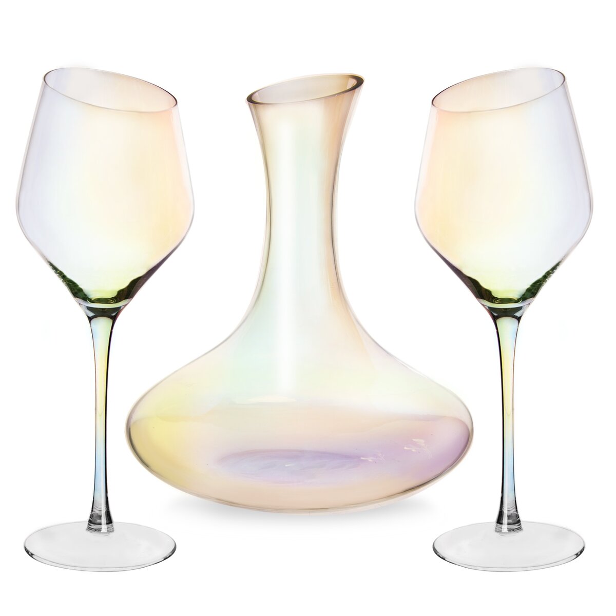 Kód produktu 127292Sada 2 stylových sklenic a karafy se zkoseným okrajem zaujme duhovým, metalickým efektem.