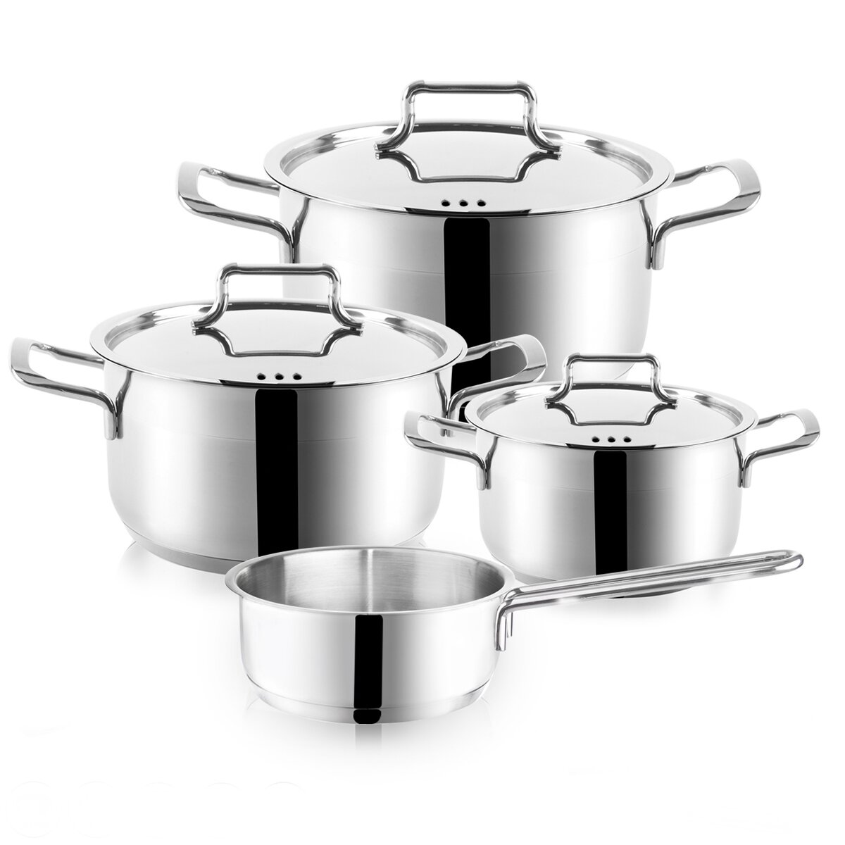 Kód produktu 113116Sada nerezového nádobí ANETT - kastrolů s poklicí 4,3 l, 3 l, 1,9 l a rendlíku bez poklice 1,9 l je vhodná na každodenní vaření na všech typech sporáků i do trouby.