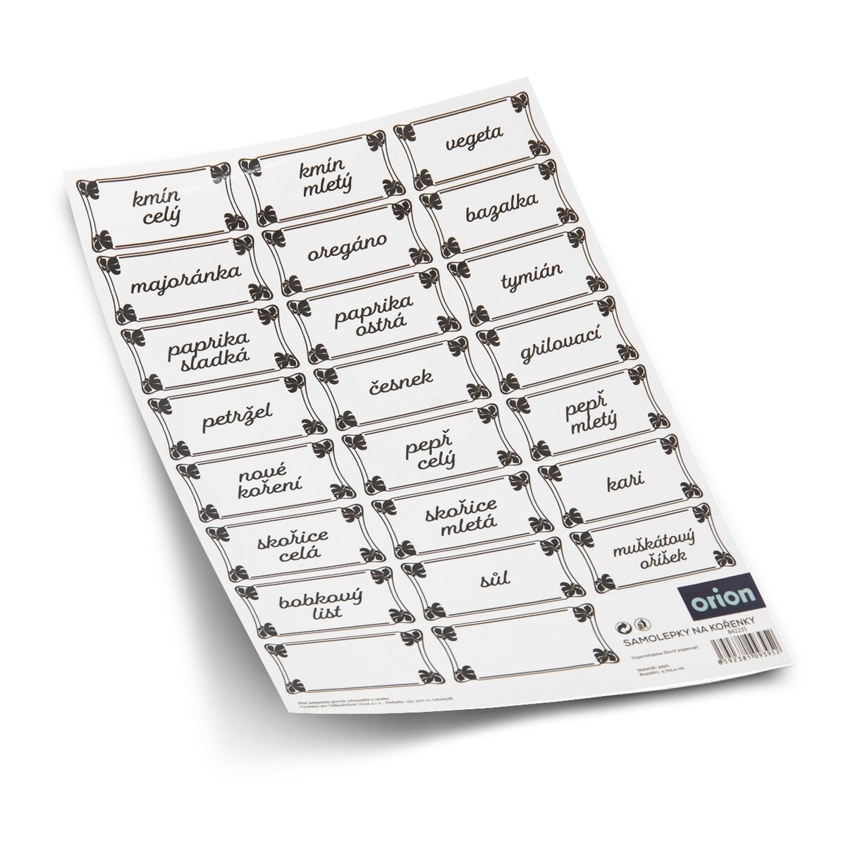 Arch obdélníkových samolepek na kořenky a dózy s bylinkami v krásném retro stylu. Obsahuje celkem 21 štítků s popisem těch nejpoužívanějších druhů koření, jako je sladká paprika, mletý pepř, skořice, grilovací koření nebo bazalka. K tomu jsou na archu dvě prázdné nálepky, které si můžete popsat podle vaší potřeby.