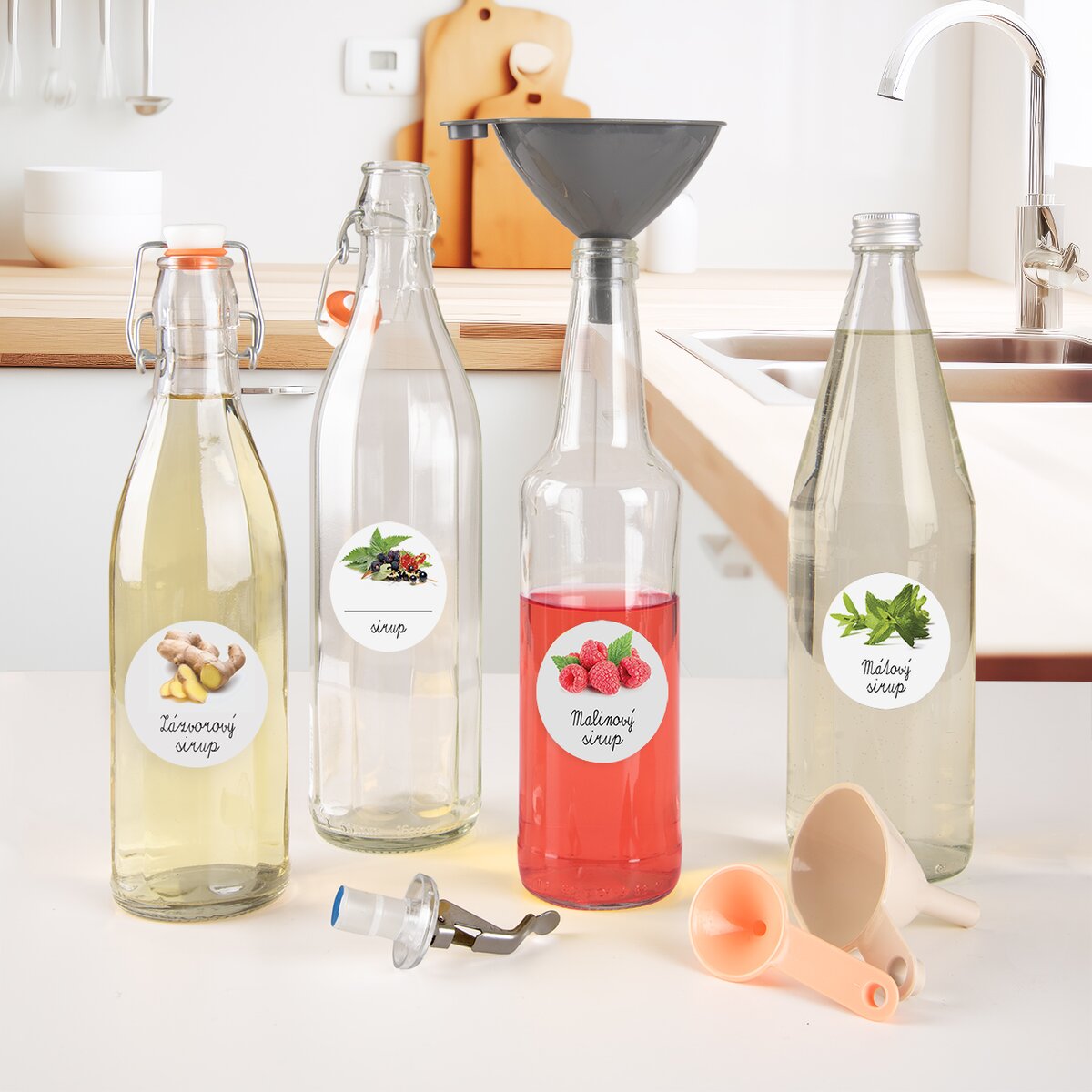 Sada papírových samolepek se tak výborně hodí k polepení láhví a sklenic, ve kterých chcete sirup uchovat. V balení jsou 3 archy i s receptem, jak sirup jednoduše připravit.