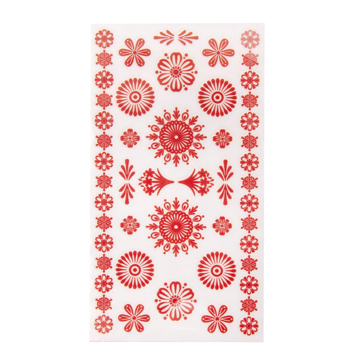 Červené samolepky, které výborně poslouží ke zdobení velikonočních vajíček. Mají jednoduché květinové jarní motivy, které vaše kraslice zaručeně oživí.