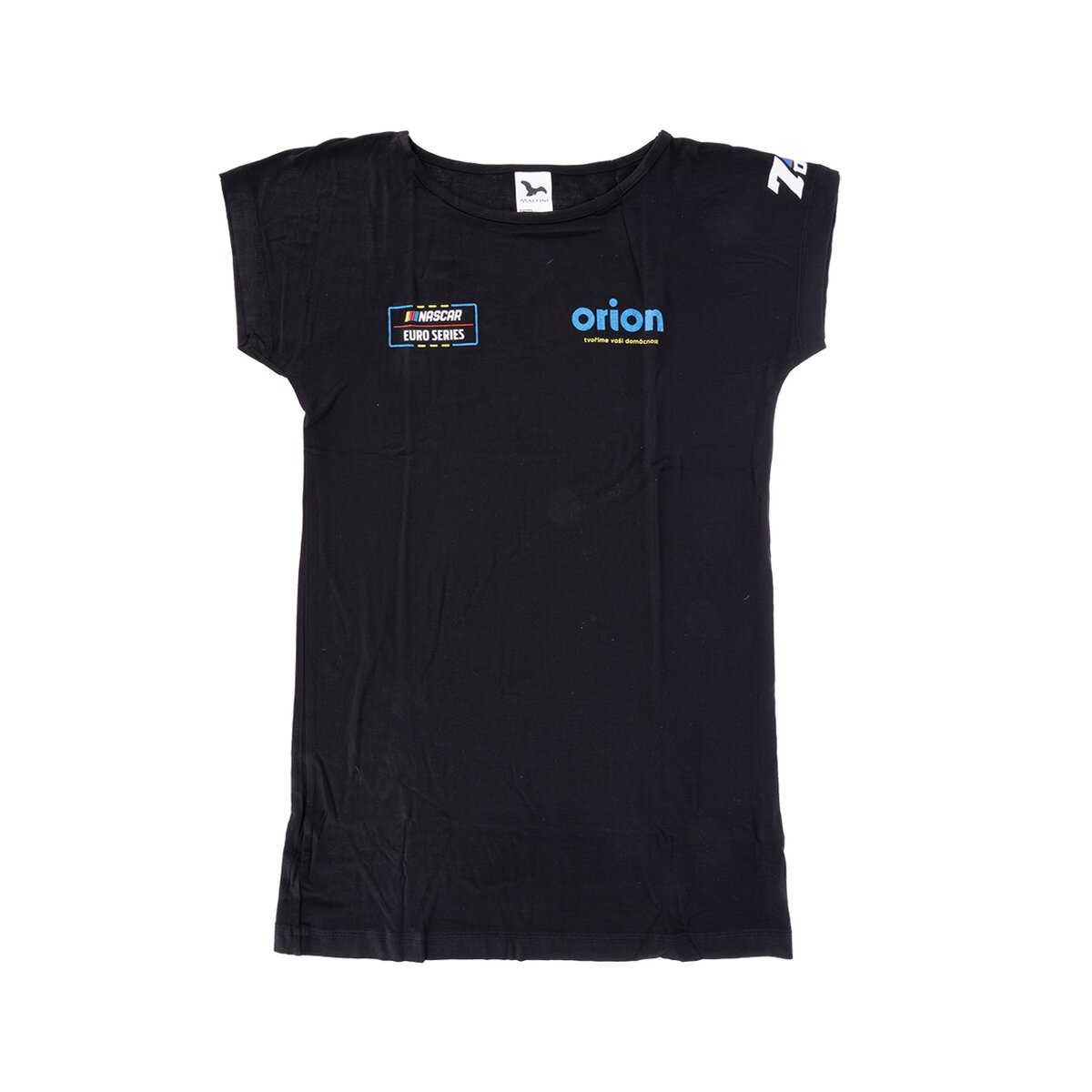 Pohodlné krátké šaty s lodičkovým výstřihem s délkou pod úroveň boků jsou potištěny motivem Orion NASCAR. Ideální na každodenní nošení i volný čas, lze je využít i jako delší triko k riflovým šortkám nebo legínám. Ocení je drobnější fanynky tohoto zajímavého motosportu plného adrenalinu.