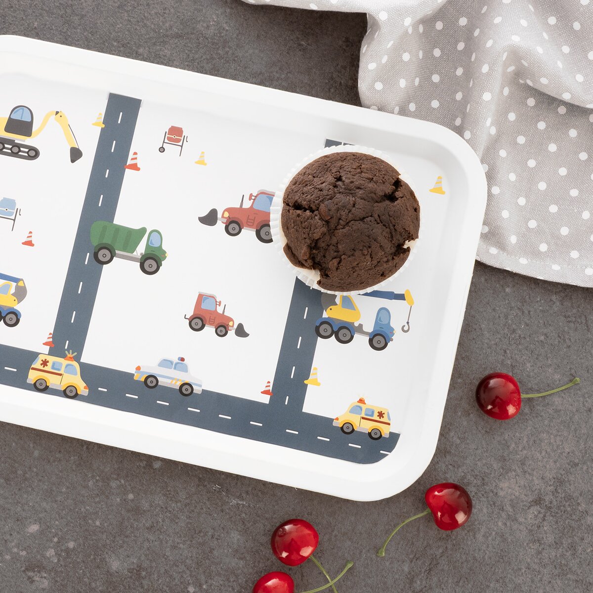 Kód produktu 155032Veselý dětský servírovací tác z kolekce AUTA z odolného plastu PP, ideální pro malé strávníky od 3 let, s hravým dekorem, vhodný na každodenní používání.