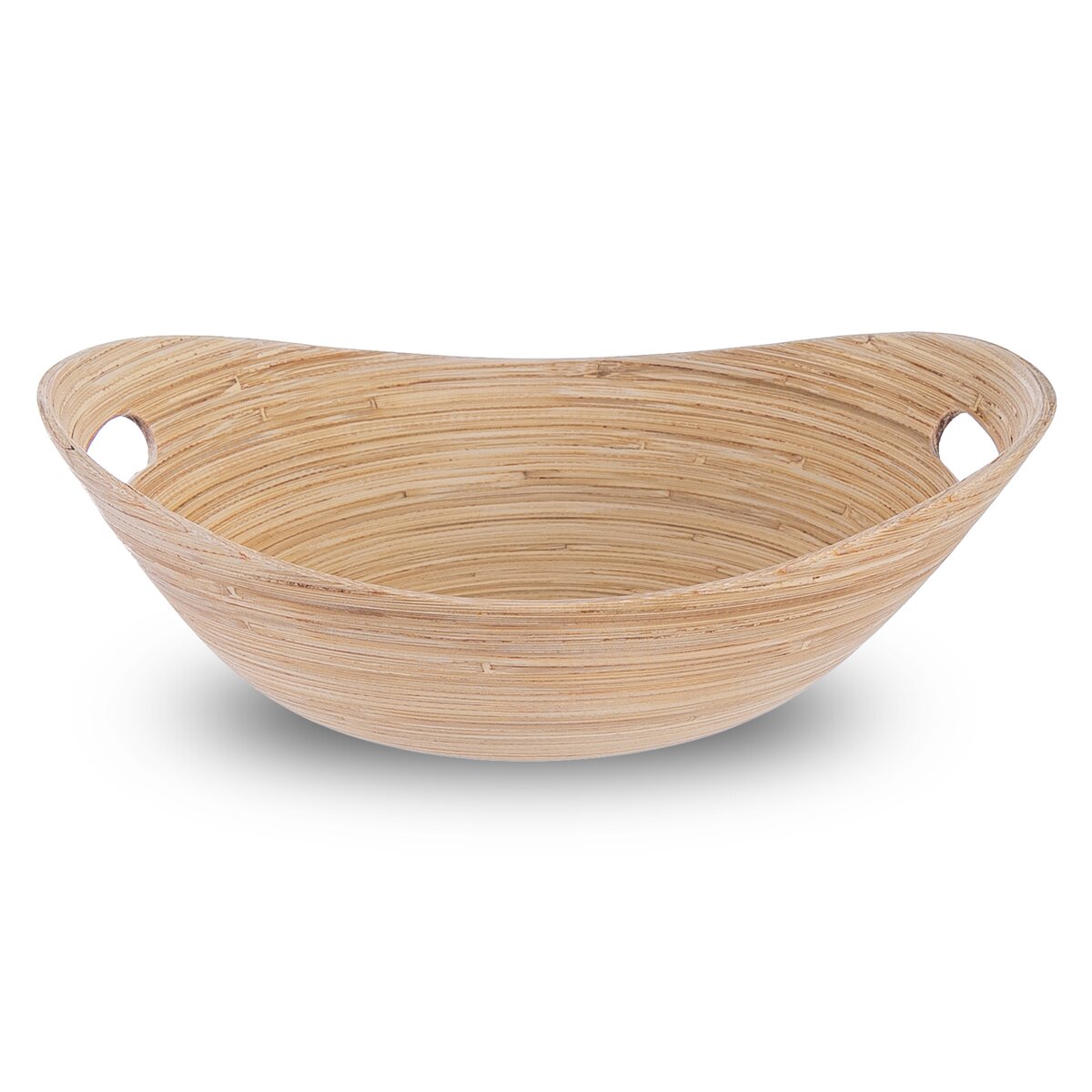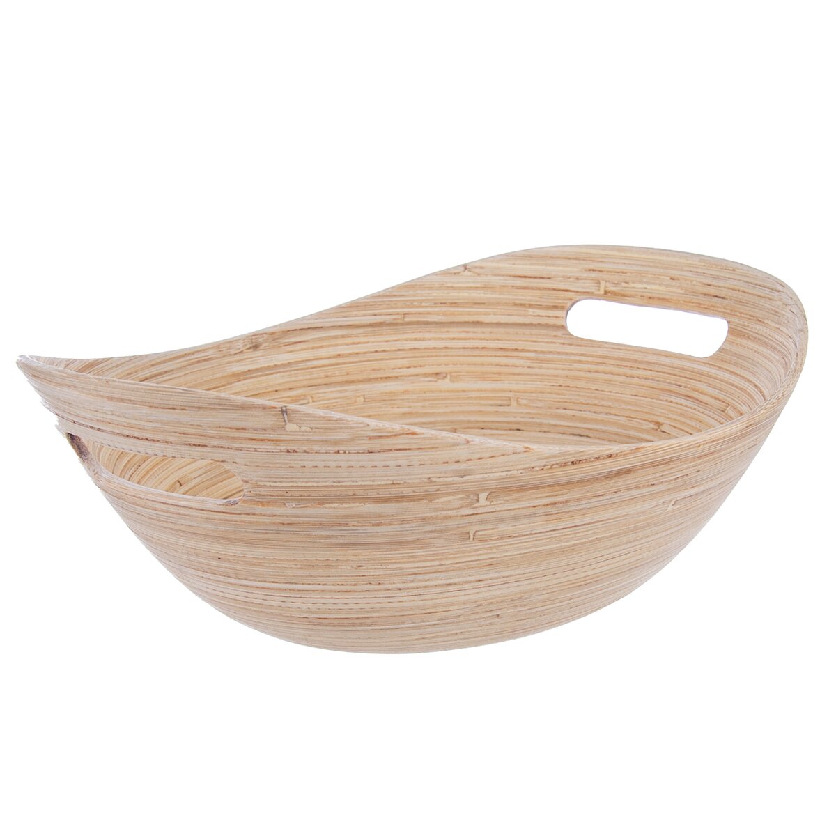 Kód produktu 126825Servírovací mísa oválného tvaru o rozměrech 32×24,5×10,5 cm. Je vyrobená z točeného bambusu a má dvě držadla. Určená pro ukládání suchých plodů a potravin.