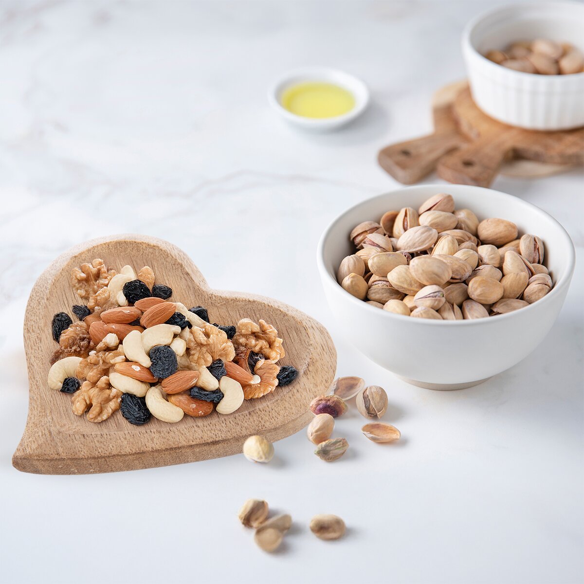 Kód produktu 129275Malá mělká miska ve tvaru srdce je vyrobena z mangového dřeva a se skvěle hodí k servírování suchých plodů, sušeného ovoce, oříšků, krekrů i k uložení přírodnin a různých drobností. Je krásnou dekorací.
