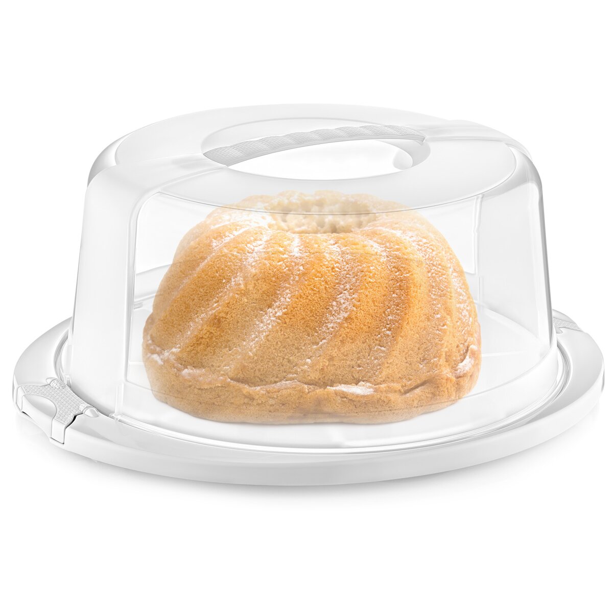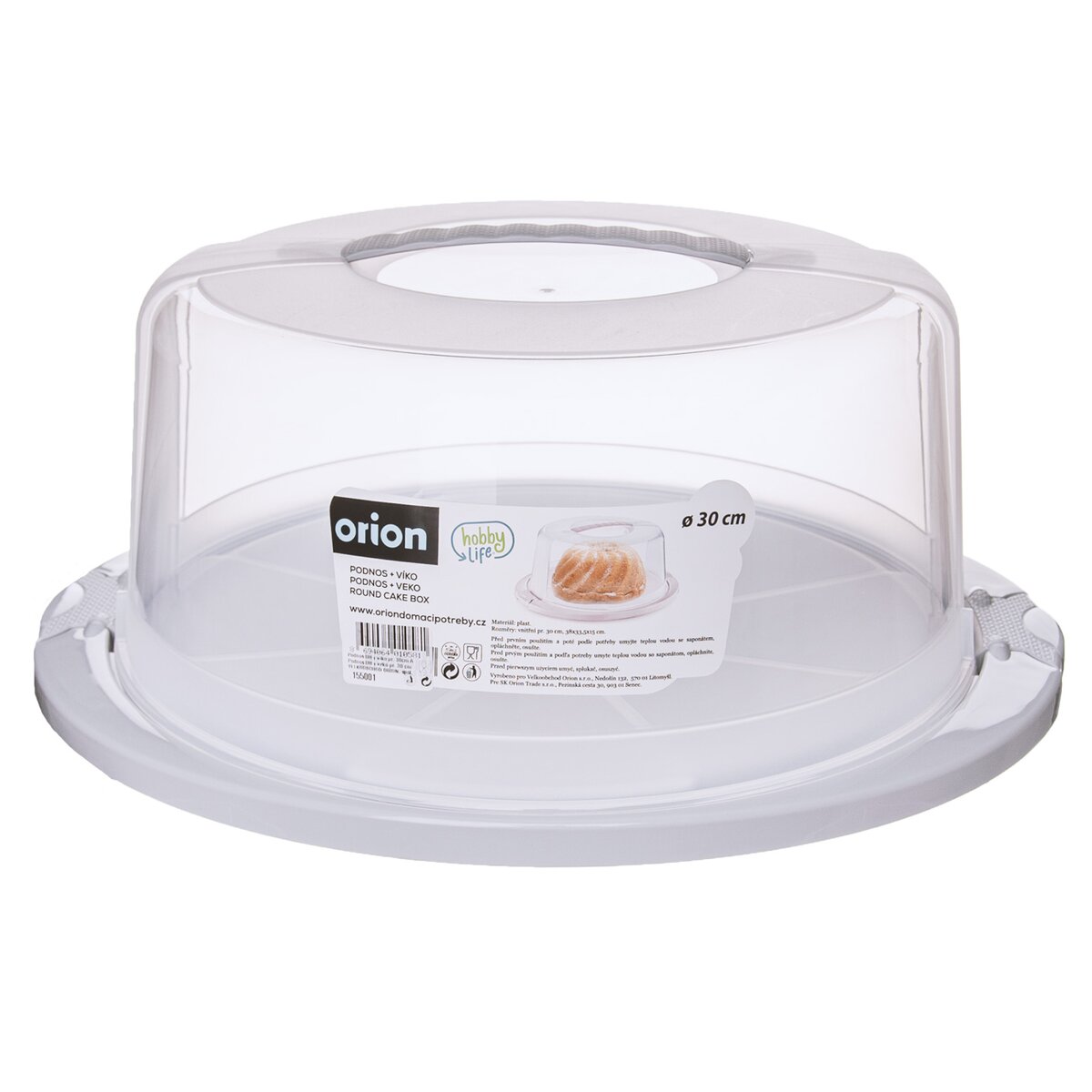 Kód produktu 155001Plastový podnos na dort o vnitřním průměru 30 cm, s praktickým transparentním poklopem a klipy po stranách pro bezpečné uzavření.