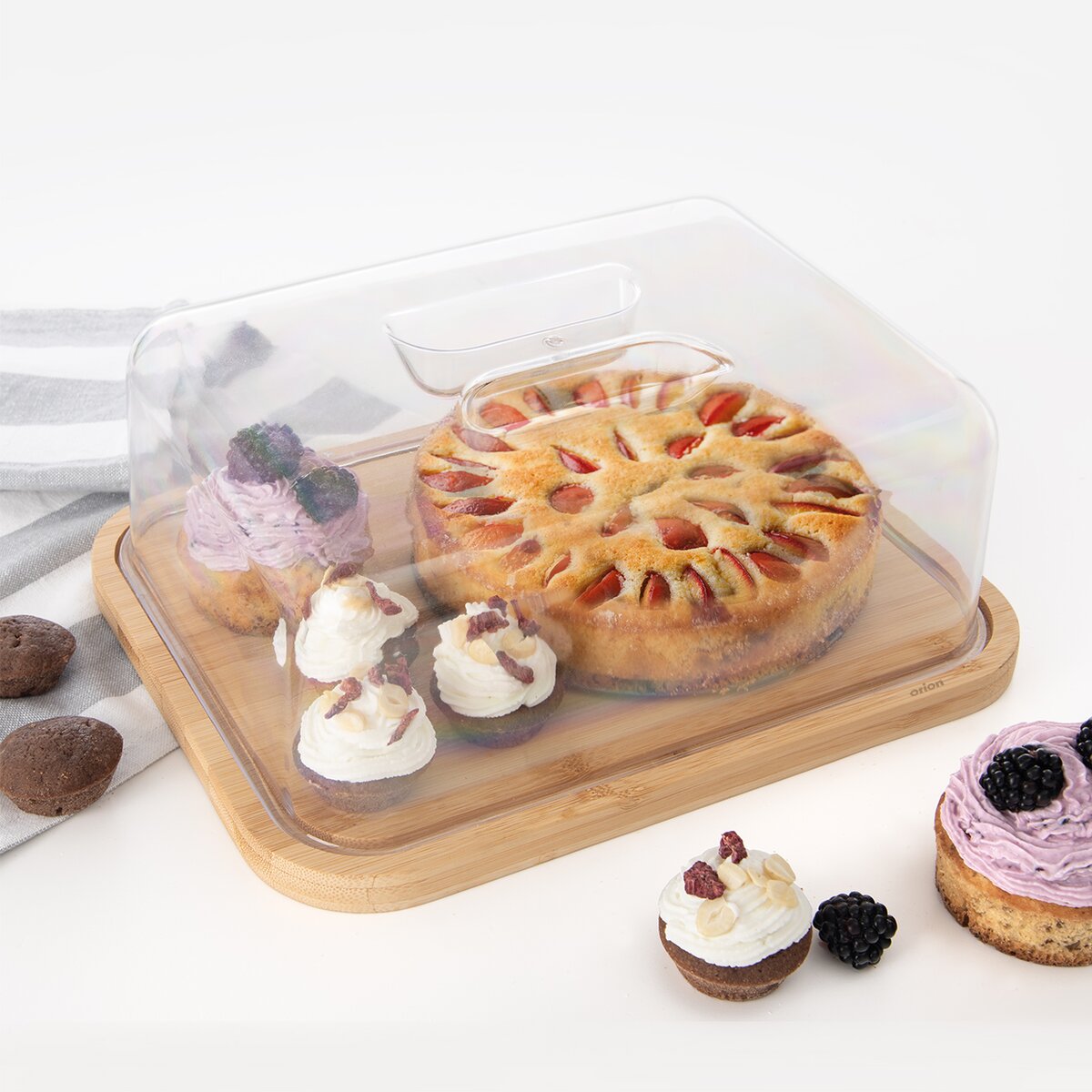 Více informacíAby naservírované dobroty neosychaly, stačí je uložit na bambusové prkénko a přiklopit transparentním poklopem. Hodí se k podávání sladkých dobrot, např. koláčů, zákusků, dortu, rolády, buchet nebo cukroví. A na rodinné oslavě nebo při grilovačce na něj můžete naskládat oblíbené sýry, uzeniny, misku oliv či sušených rajčat, slané krekry či chlebíčky.