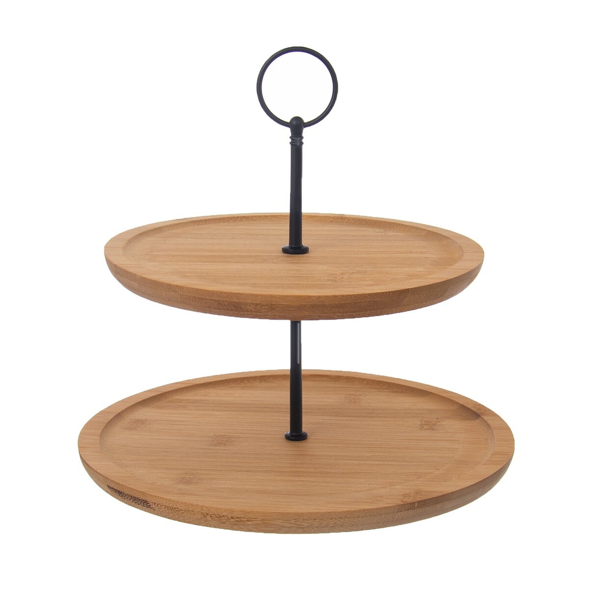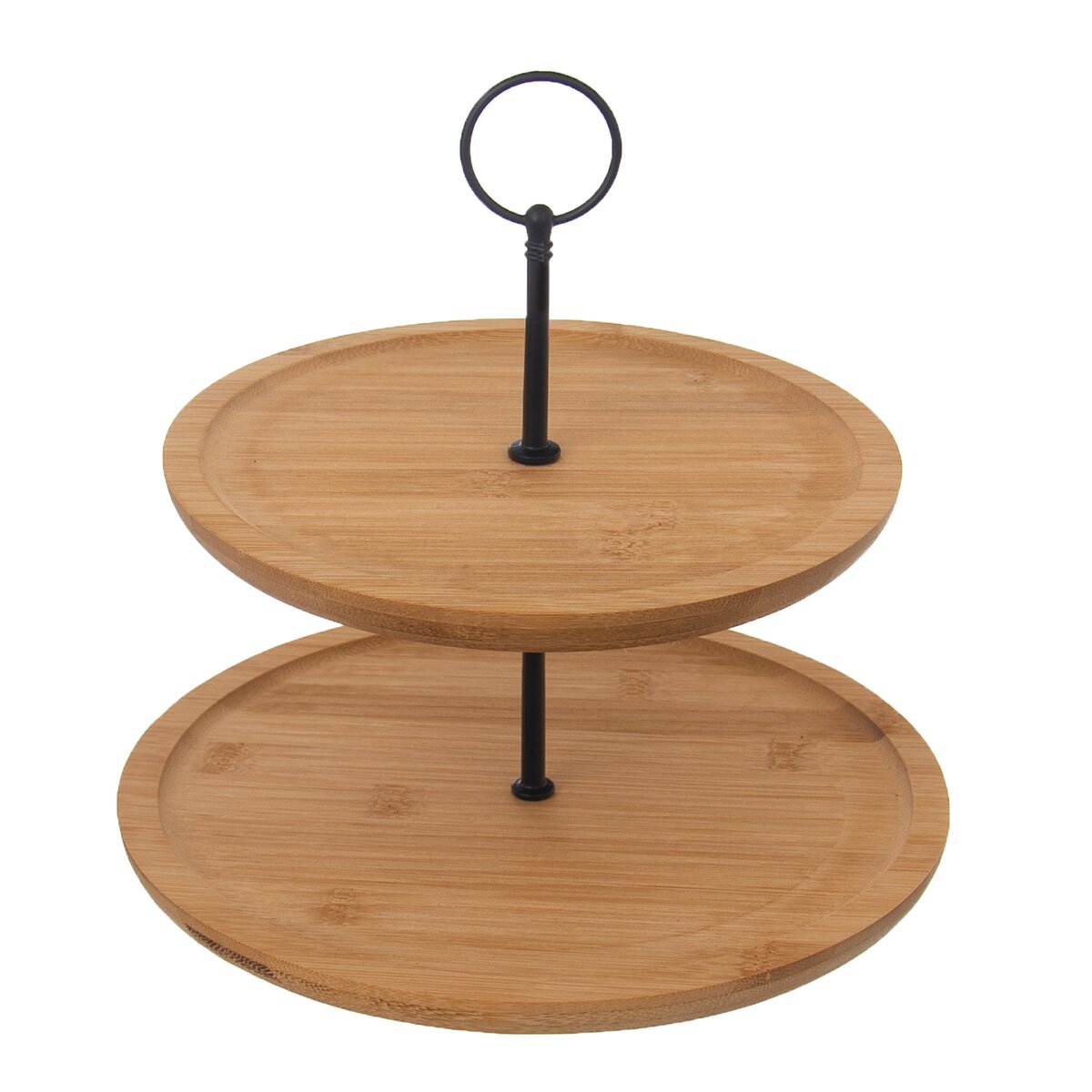 Kód produktu 540593Dvoupatrový stojan z kovu a bambusového dřeva určený k servírování dezertů a slaných pochutin. Kulaté tácy mají průměr 21 a 25 cm.