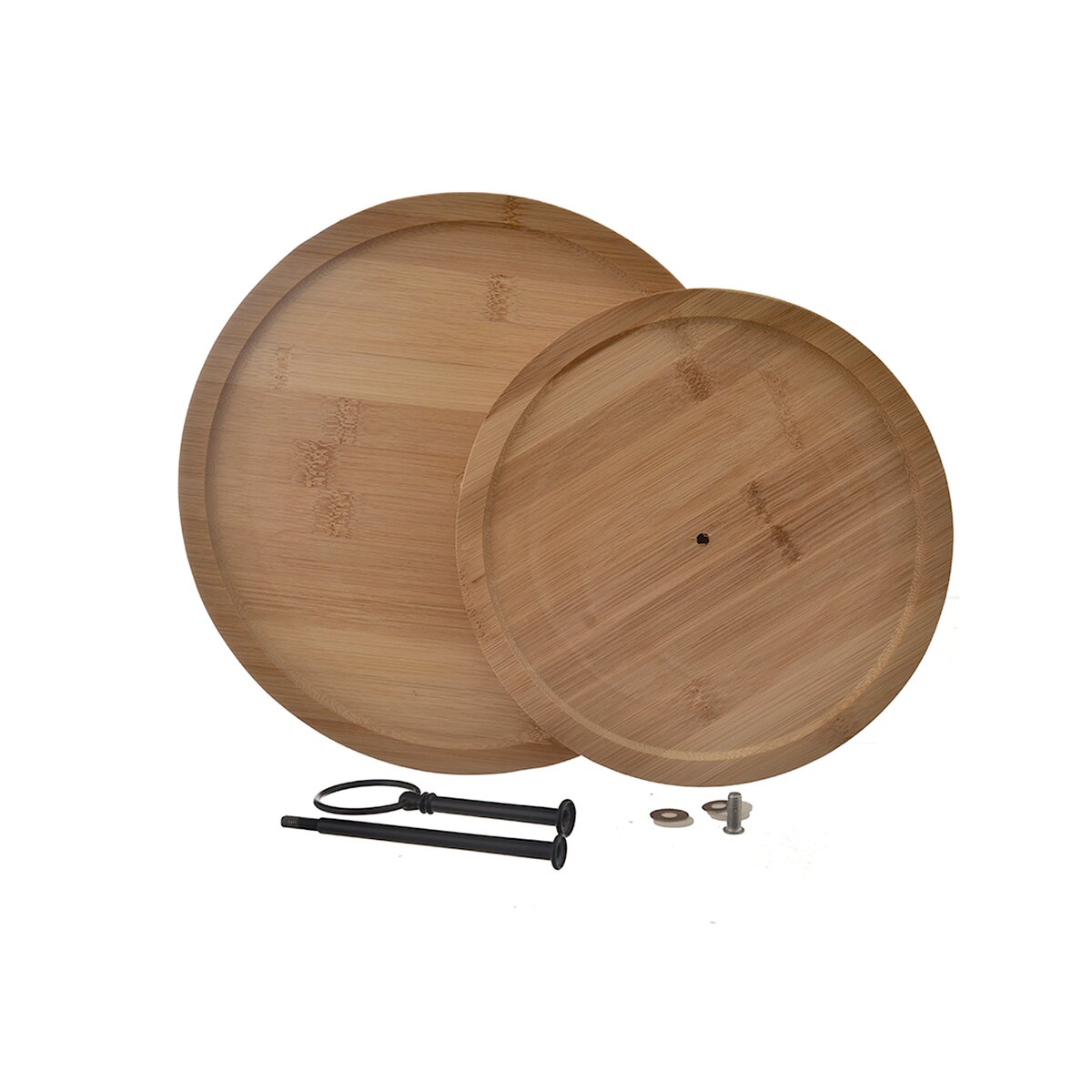 Jeho součástí jsou dva kulaté talíře z bambusového dřeva a kovový úchyt s kulatým zakončením, který usnadňuje jeho přenášení. Hodí se k servírování koláčů, cukroví, mini zákusků, chlebíčků či jednohubek.