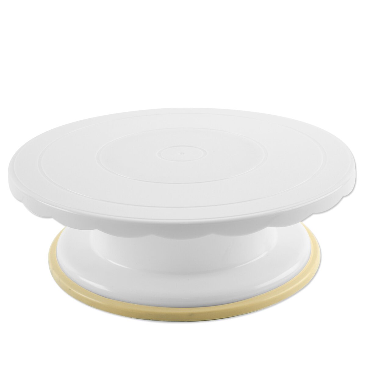 Kód produktu 540523Plastový otočný stojan o průměru 28 cm v bílé barvě, určený ke zdobení a servírování dortů i k jejich potahování.