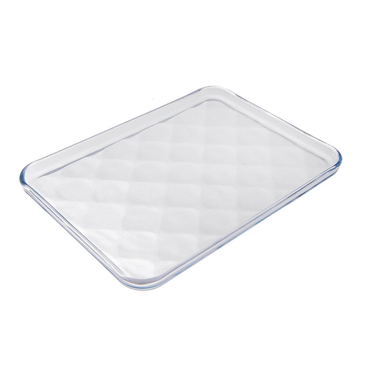 Kód produktu 153892Skleněný tác se zvednutým lemem a jemnou geometrickou strukturou se hodí k servírování občerstvení, kávy, moučníků apod., ale díky použitému borosilikátovému sklu také k rozpékání, pečení pokrmů v troubě.