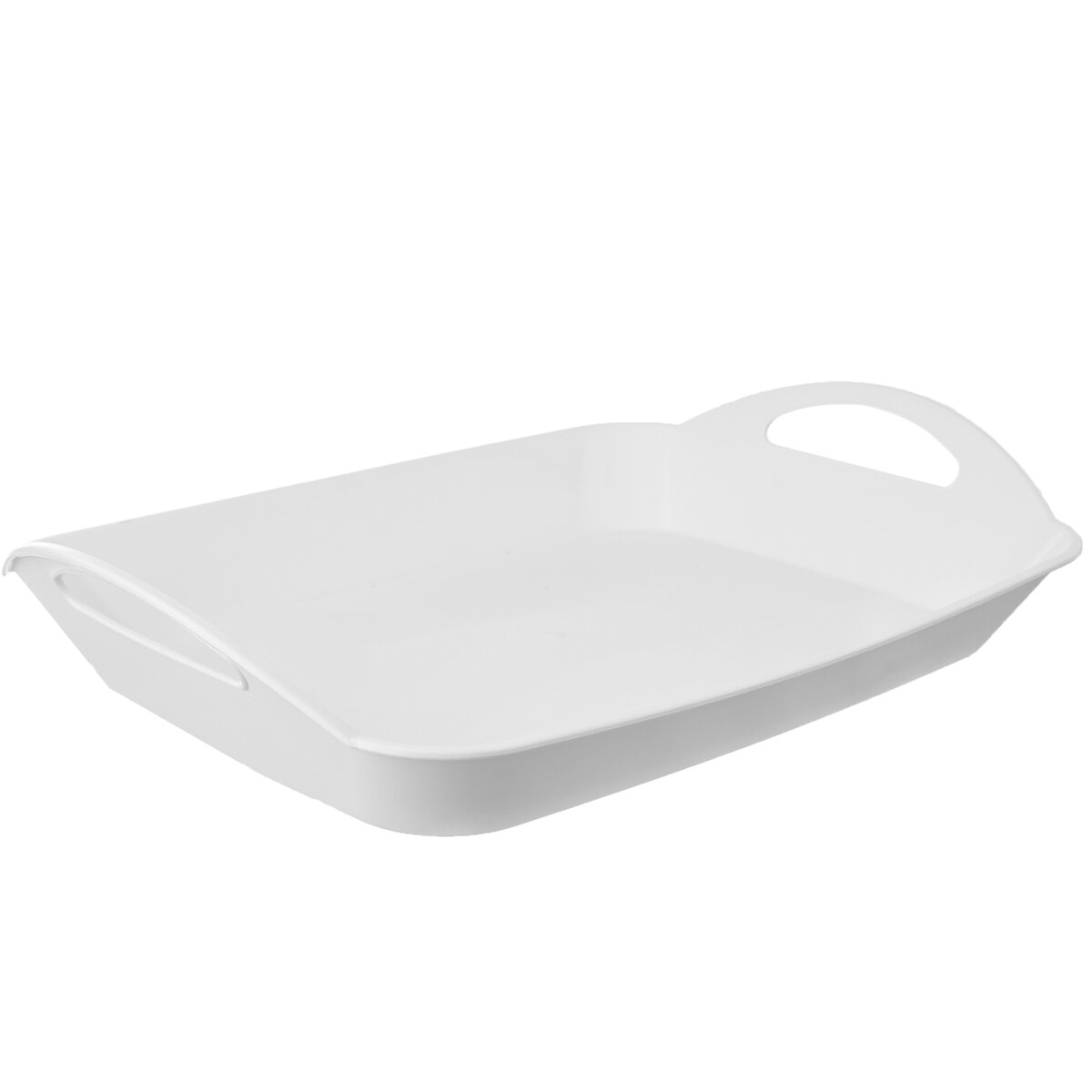 Kód produktu 153833Hluboký bílý plastový tác s uchy o rozměru 43,5x31,5x5 cm slouží k přenášení nápojů a pokrmů.