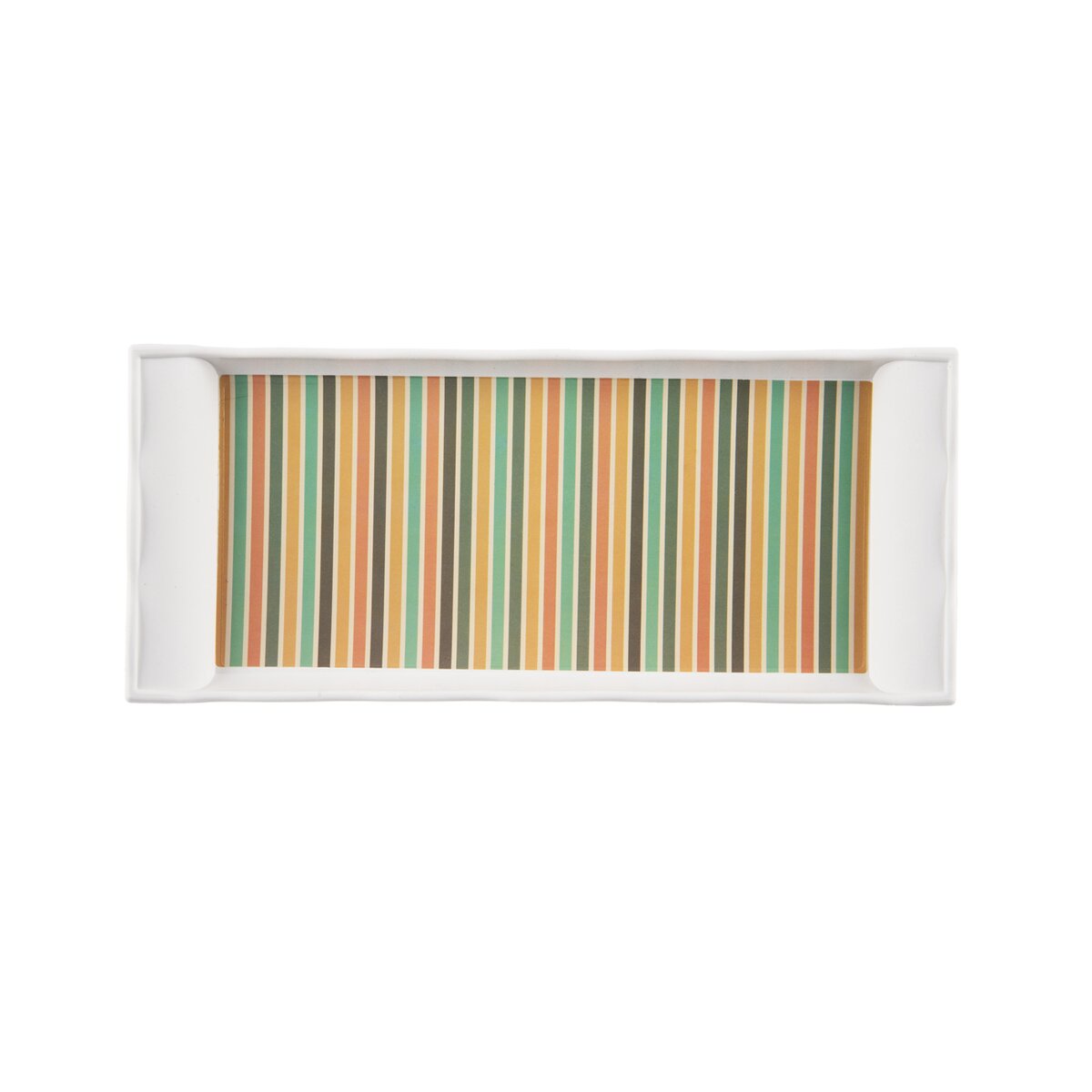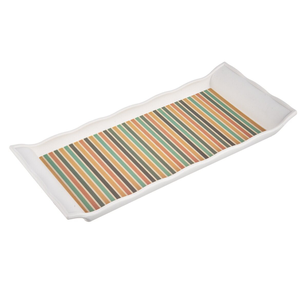 Kód produktu 153884Plastový servírovací tác se zvednutými boky se dobře drží a poslouží k přenášení občerstvení, kávy apod. Zaujme barevnými pruhy, odkazujícími na retro styl.