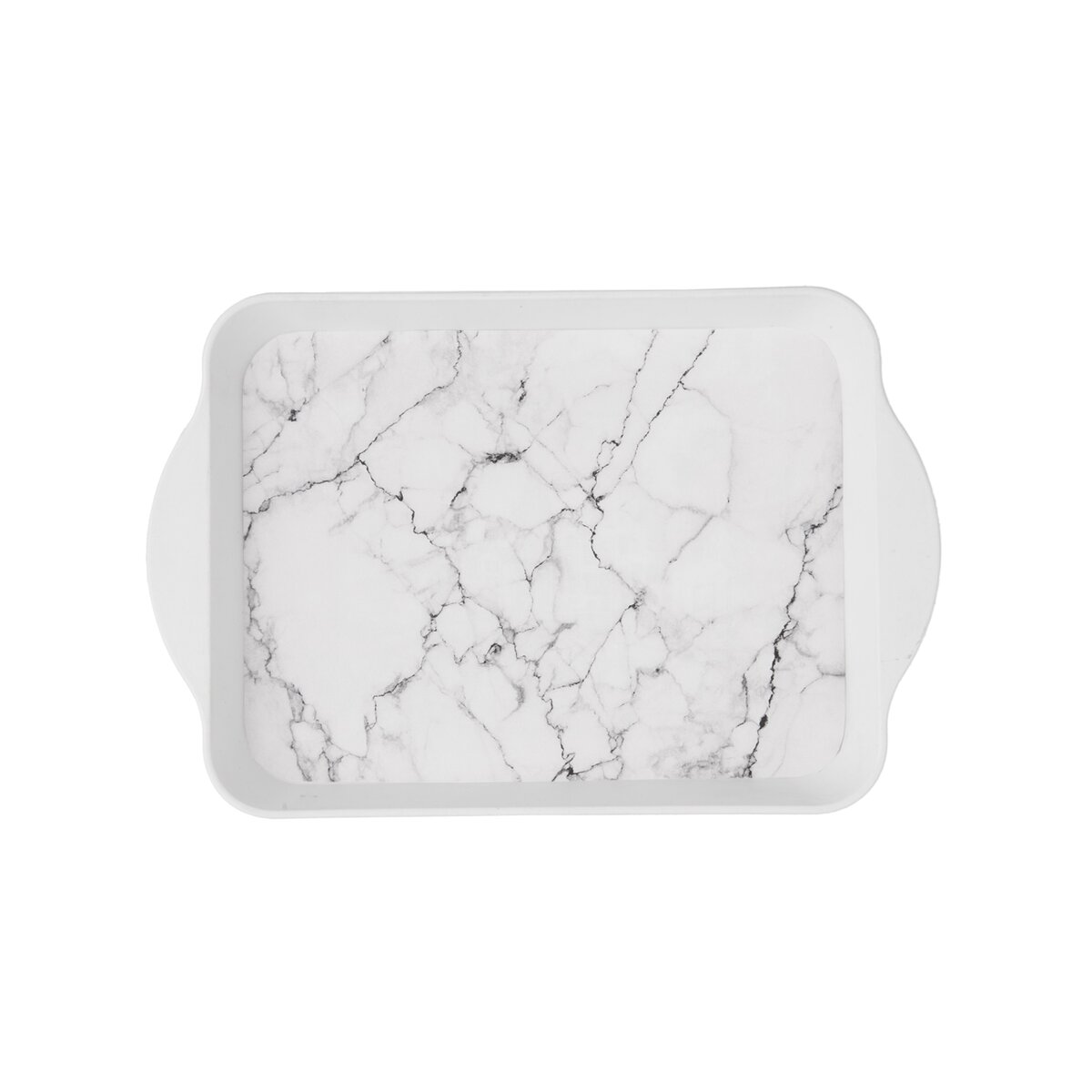 Malý obdélníkový tác s nadčasovým dekorem bílého mramoru využijete při servírování nejrůznějších dobrot a nápojů, např. malé kávy i sušenek nebo bábovky na dezertním talířku. Je vyrobený z kvalitního plastu PP, snese teploty až +40 °C.