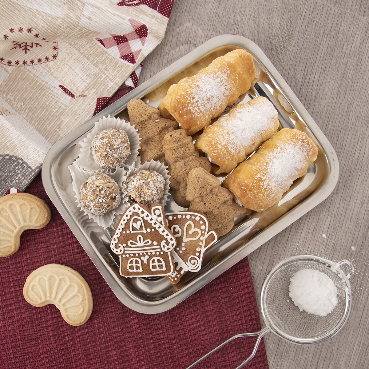 Nerezový tác WAITER využijete k servírování zákusků, chlebíčků, svačiny a jiných pochutin. Je vyrobený z nerezové oceli, díky čemuž je pevný a odolný. Bude šikovným pomocníkem při přípravě rautu, občerstvení pro klienty nebo při prezentaci vánočního cukroví.