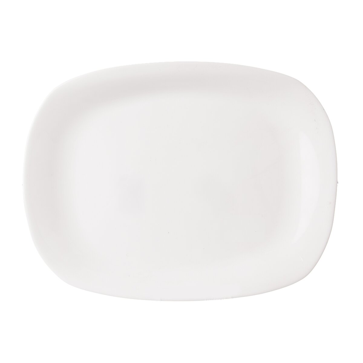 Kód produktu 128321Obdélníkový mělký talíř LUNA o rozměrech 28×21 cm z opálového skla.