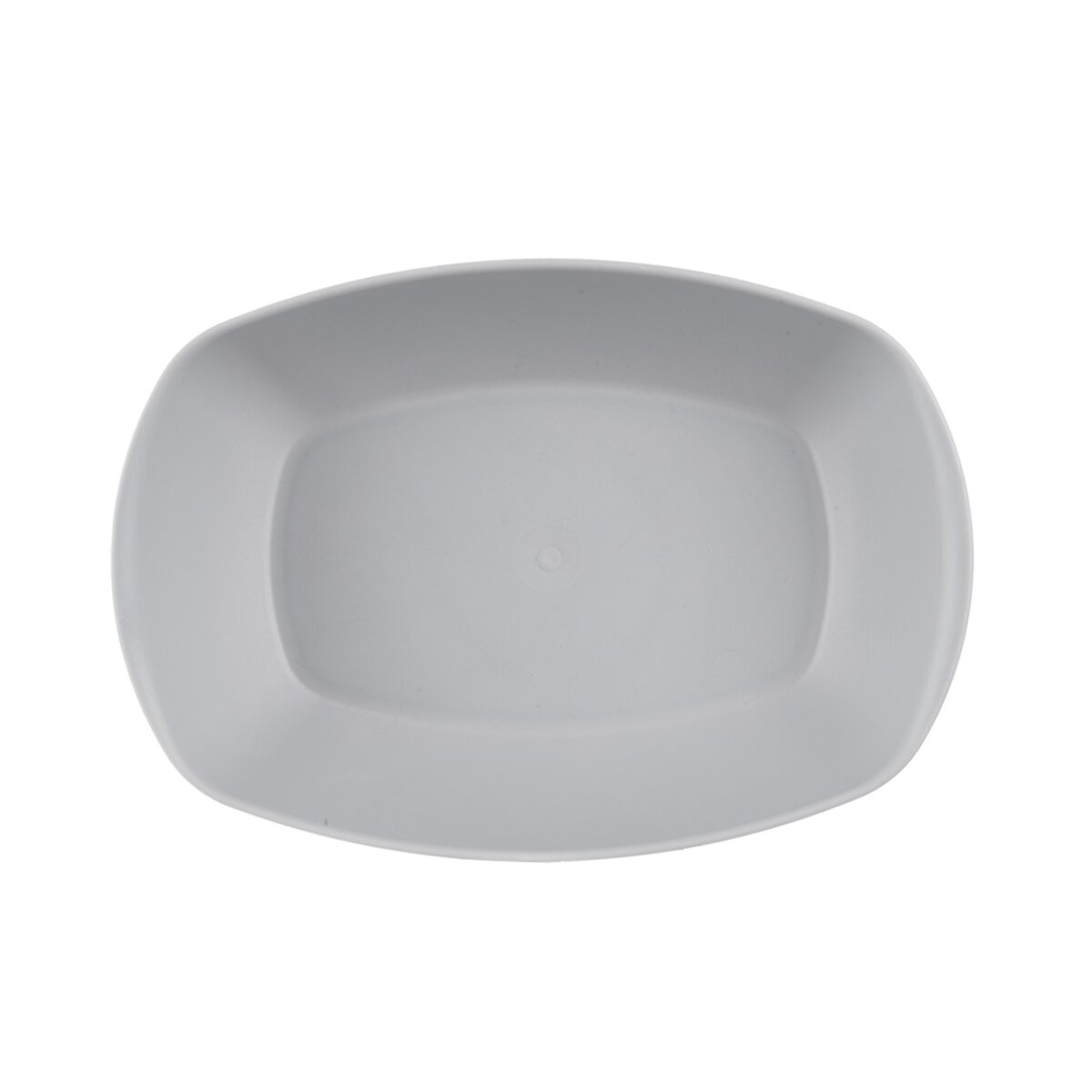 Kód produktu 129136Větší plastový oválný talíř SANDY v nadčasové šedé barvě se hodí k podávání ovoce, zeleninových salátů, drobných slaných a sladkých pochutin doma, na chalupě, v karavanu i na pikniku.