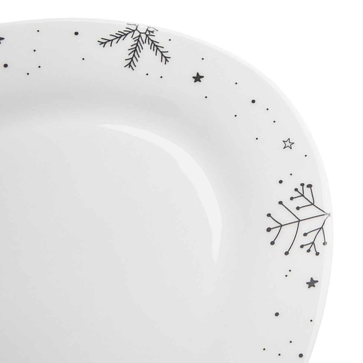 Kód produktu 129546Oválný servírovací talíř z porcelánu je zdoben jemným motivem vloček, lze jej mýt v myčce nádobí a používat v mikrovlnné troubě.