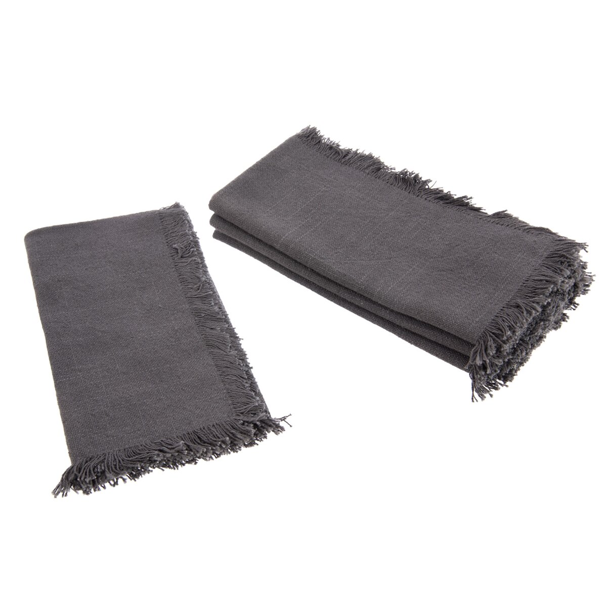 Kód produktu 842366Opakovaně použitelné ubrousky o rozměru 45x45 cm v sadě 4 kusů mají šedou barvu. Jsou vyrobeny z bavlny a okraj tvoří jemné třásně. Hodí se k doladění každodenní i slavnostní tabule.