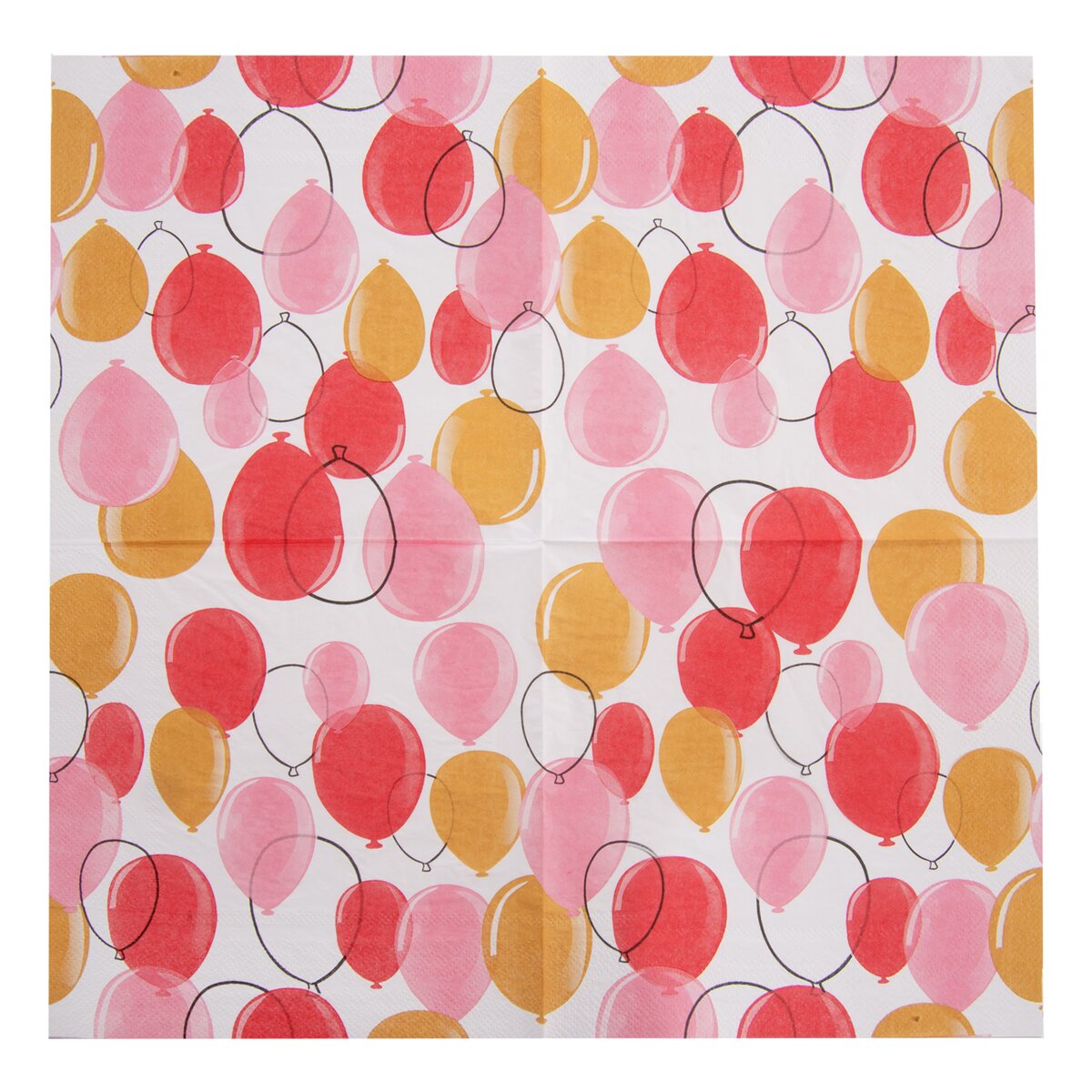 Kód produktu 842332Sada 20 ks světlých papírových ubrousků s tištěným motivem růžových, okrových a červených balonků. Mají velikost 33x33 cm a skvěle doplní prostřený stůl doma, na rodinné nebo firemní oslavě.
