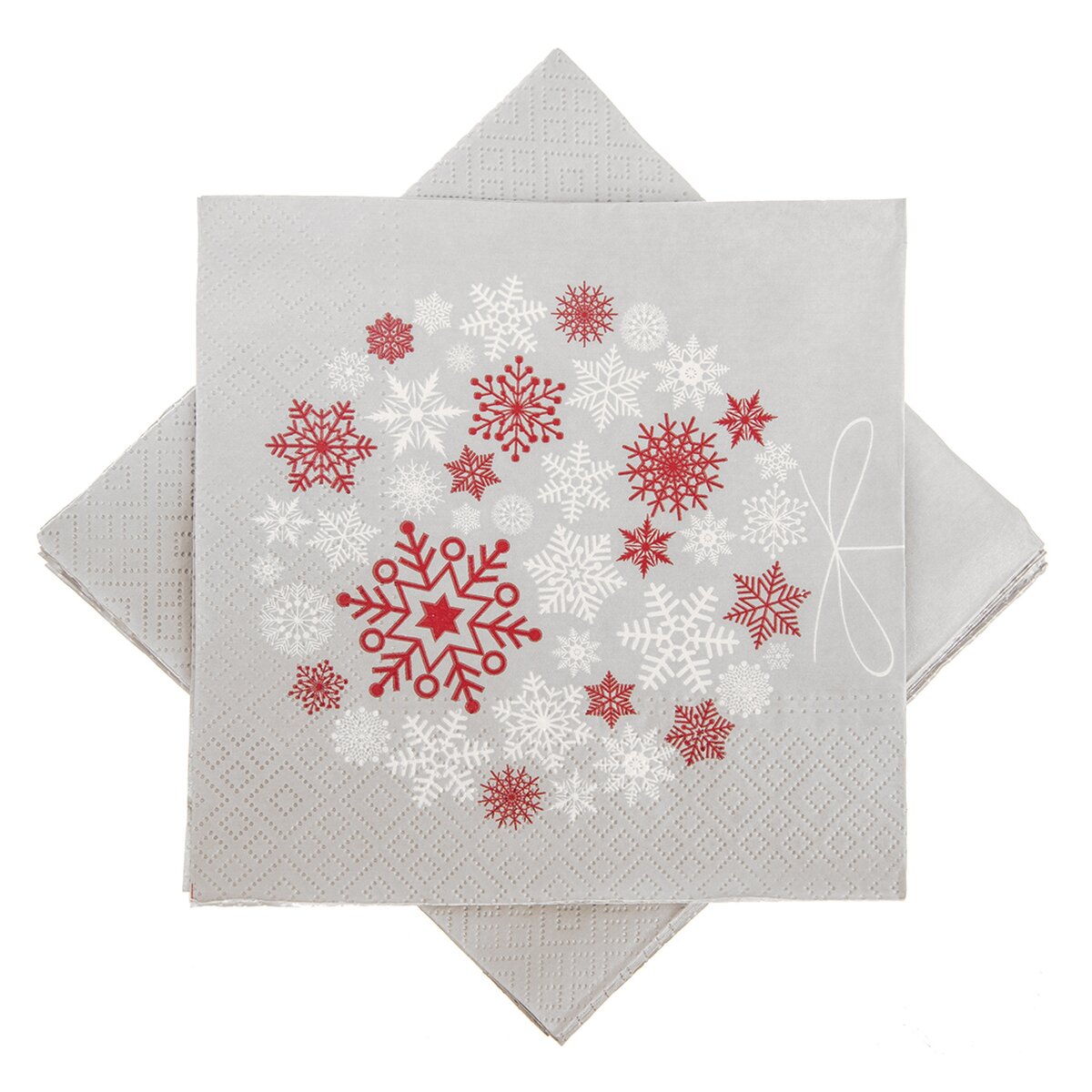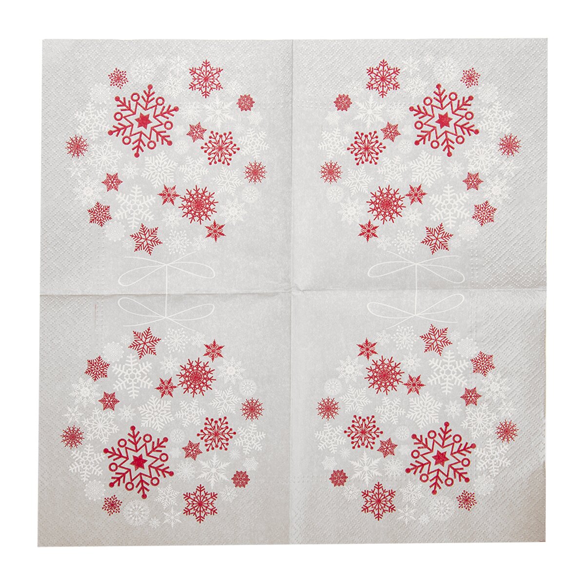 Kód produktu 842301Sada 20 ks vánočně laděných papírových ubrousků zaujme motivem bílých a červených vloček, které jsou uspořádány do tvaru baňky. Mají velikost 33x33 cm.