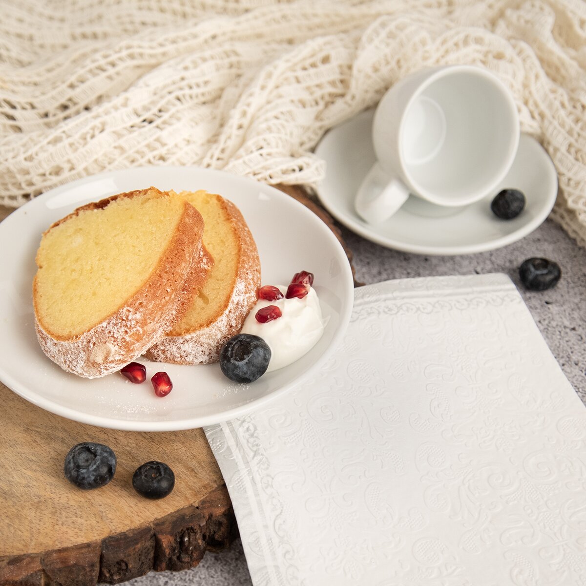 Kód produktu 842346Sada 20 ks bílých papírových ubrousků o velikosti 33x33 cm zdobí jemný plastický dekor a velice dobře doplní svátečně prostřený stůl, piknikový koš nebo pomůže hezky zabalit svačinu.