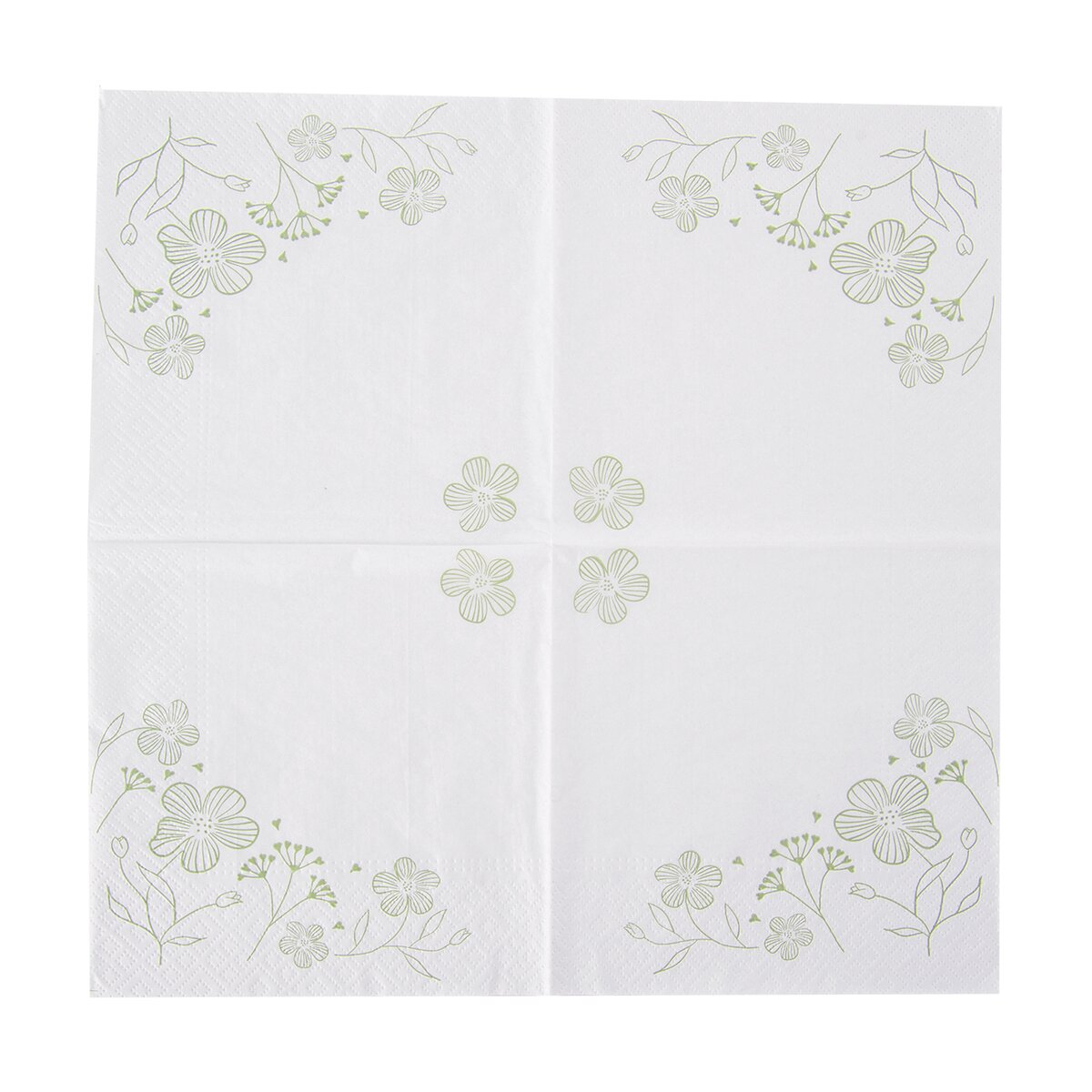 Kód produktu 842313Sada 20 ks bílých papírových ubrousků GREENISH o velikosti 33x33 cm doplní prostřený stůl, piknikový košík, posezení na terase, nebo pomůže hezky zabalit svačinu.