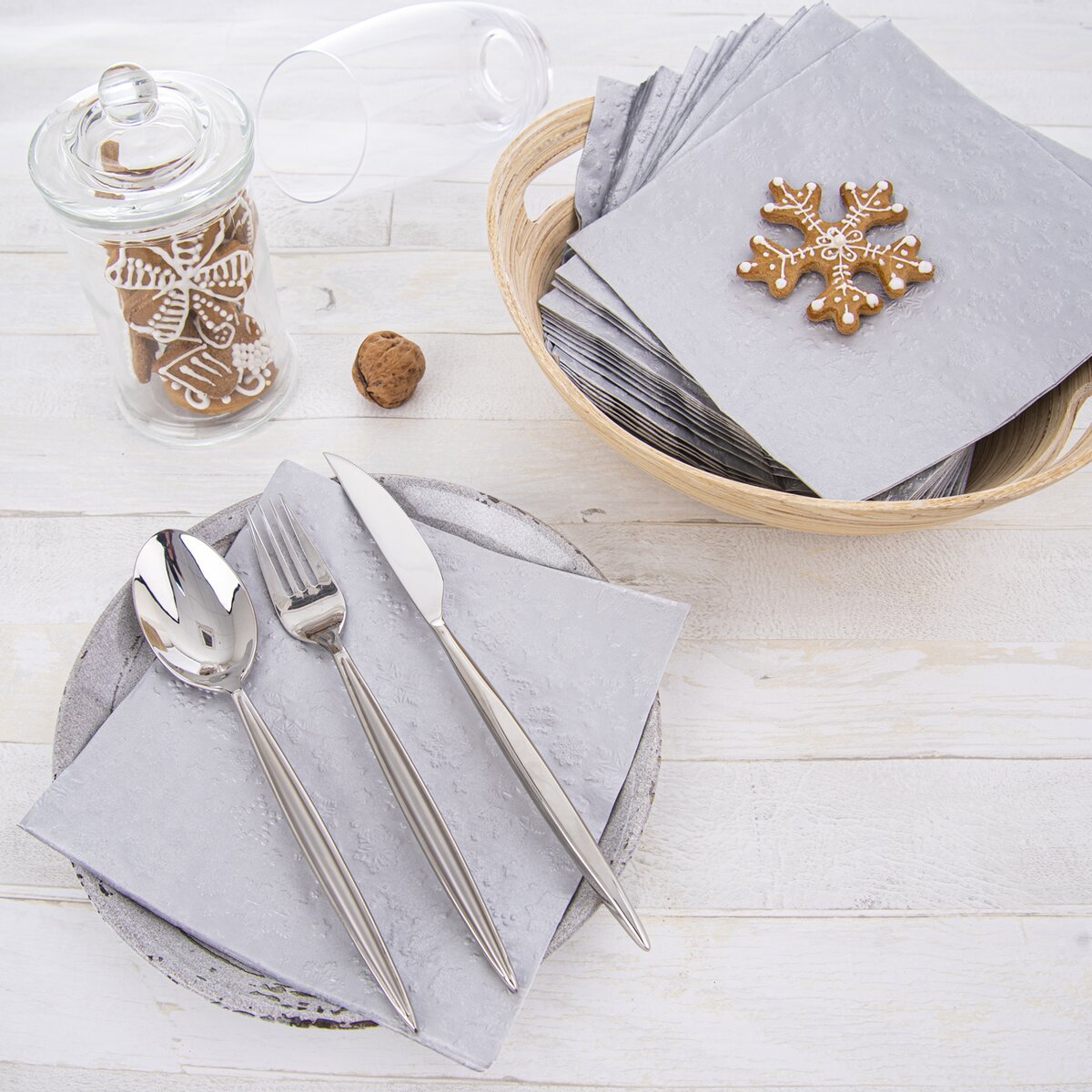 Ubrousek s plastickým dekorem. Perleťový, šedivý. Sada 20 ks. Materiál: papír. Rozměry: 33x33x cm.