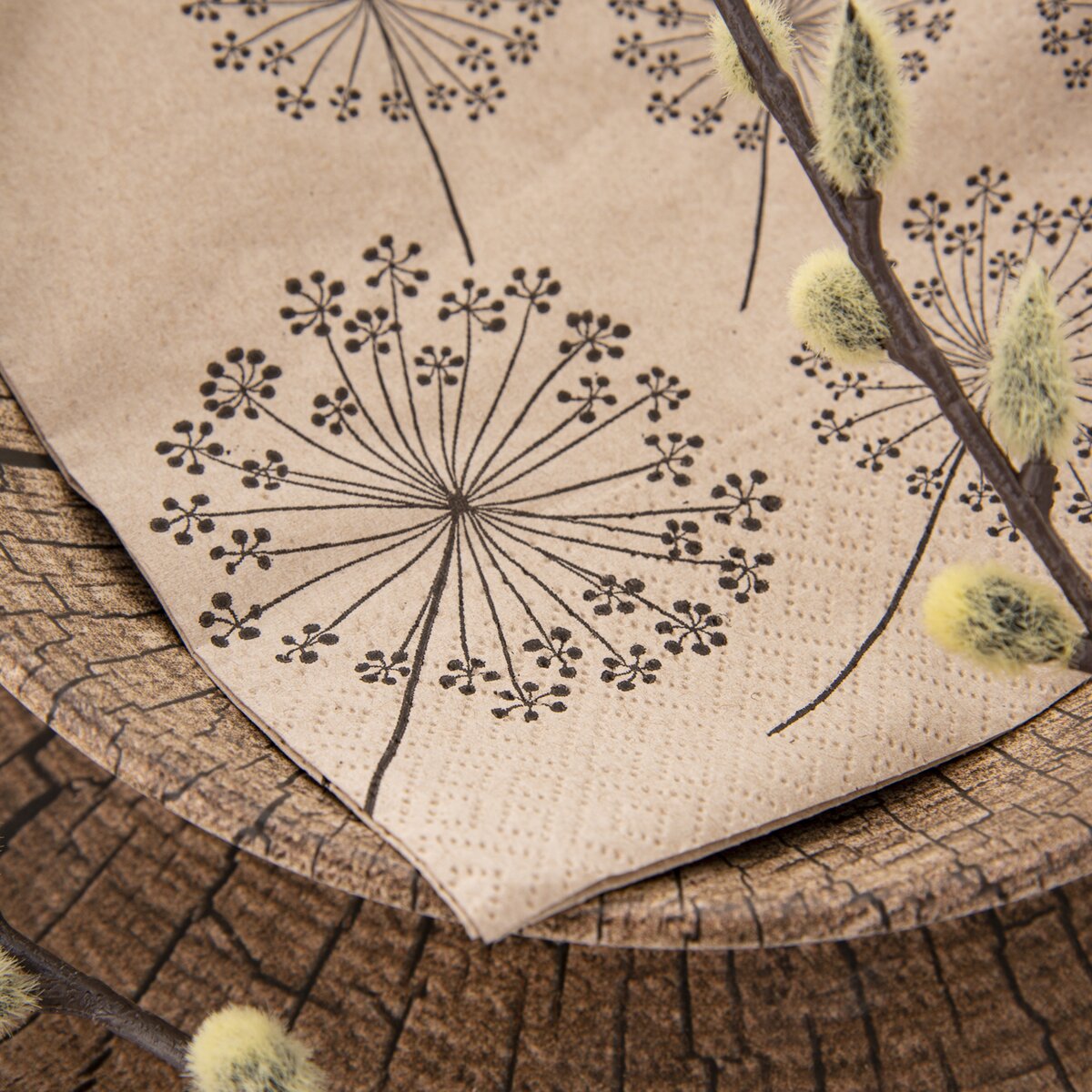 Kód produktu 841883Sada 20 ks papírových ubrousků s motivem odkvetlých pampelišek, velikosti 33x33 cm, doplní prostřený stůl, piknikový košík, posezení s grilováním na terase, pomůže hezky zabalit svačinu.