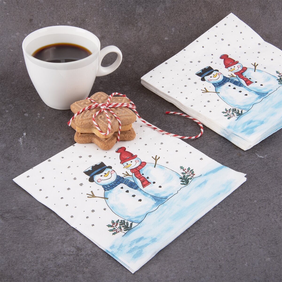 Kód produktu 842361Sada 20 ks papírových ubrousků SNĚHULÁK o velikosti 33x33 cm pozvedne slavnostní stolování v období Adventu i celé zimy.
