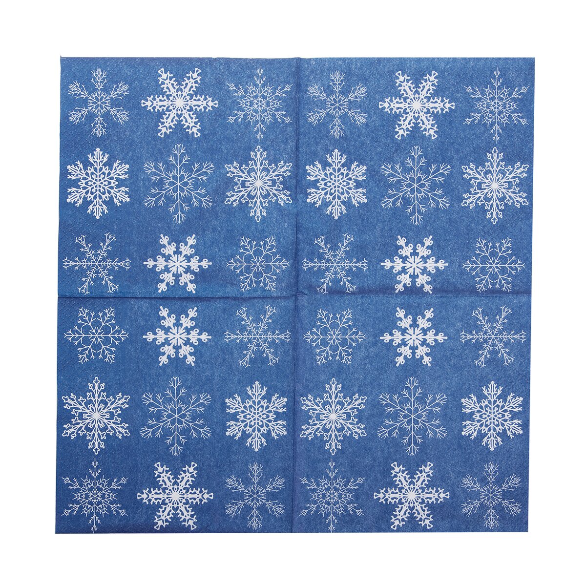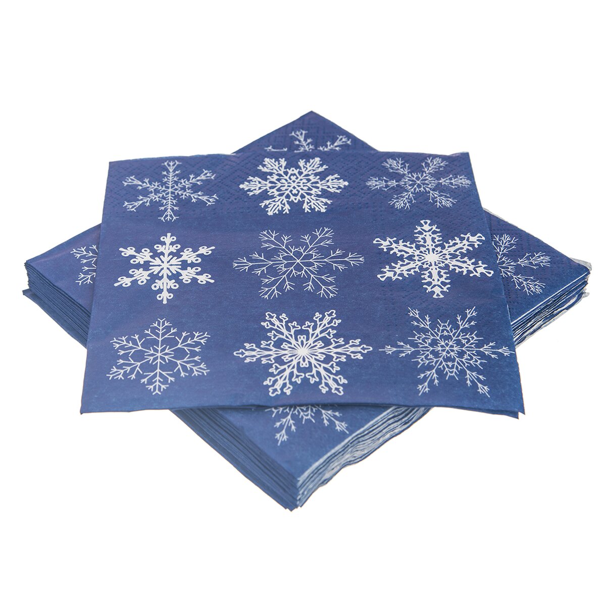Kód produktu 842303Sada 20 ks vánočně laděných papírových ubrousků zaujme motivem bílých vloček na modrém podkladu. Mají velikost 33x33 cm.