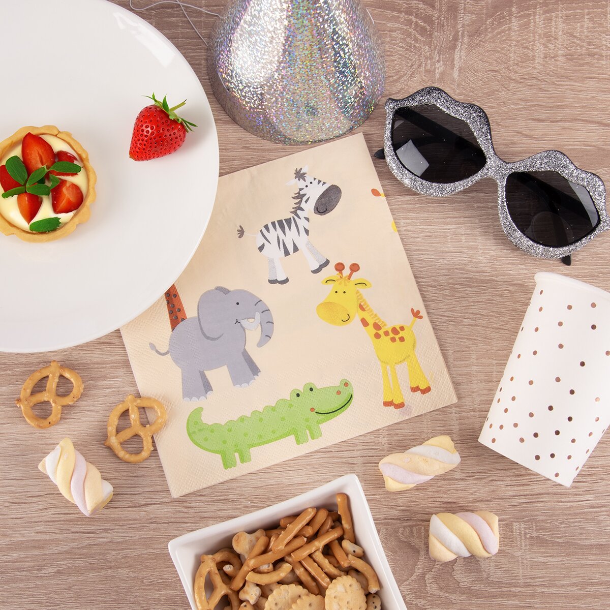 Hurá na party plnou hezky naservírovaných dobrot. Na dětské oslavě jsou k utření úst a rukou potřeba ubrousky, které ke stolování také patří. Tyto zdobí milý dekor zvířátek ze zoologické zahrady, který okouzlí kluky i holky.