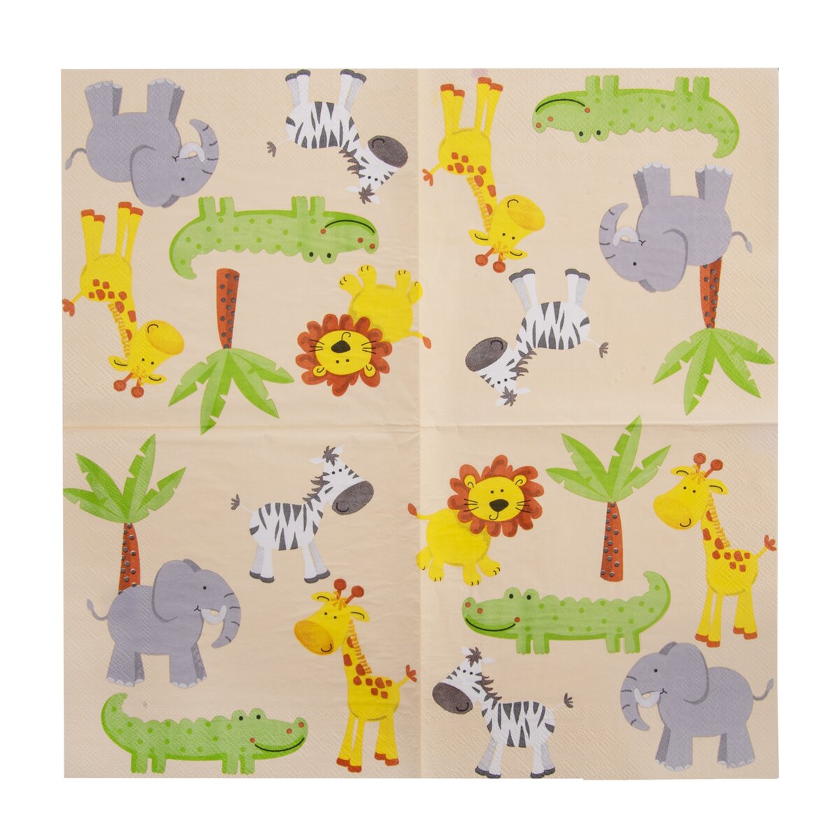 Kód produktu 842345Sada 20 ks světlých papírových ubrousků s tištěným motivem se zvířátky ze ZOO. Mají velikost 33x33 cm a skvěle doplní prostřený stůl doma, v dětské herně nebo je lze použít k zabalení svačinky.