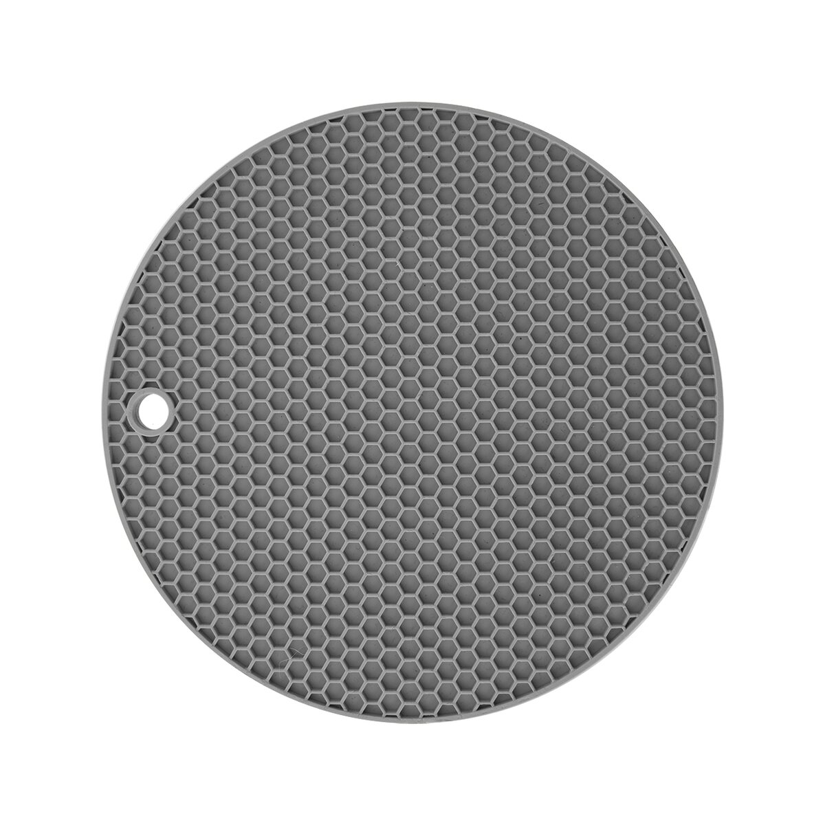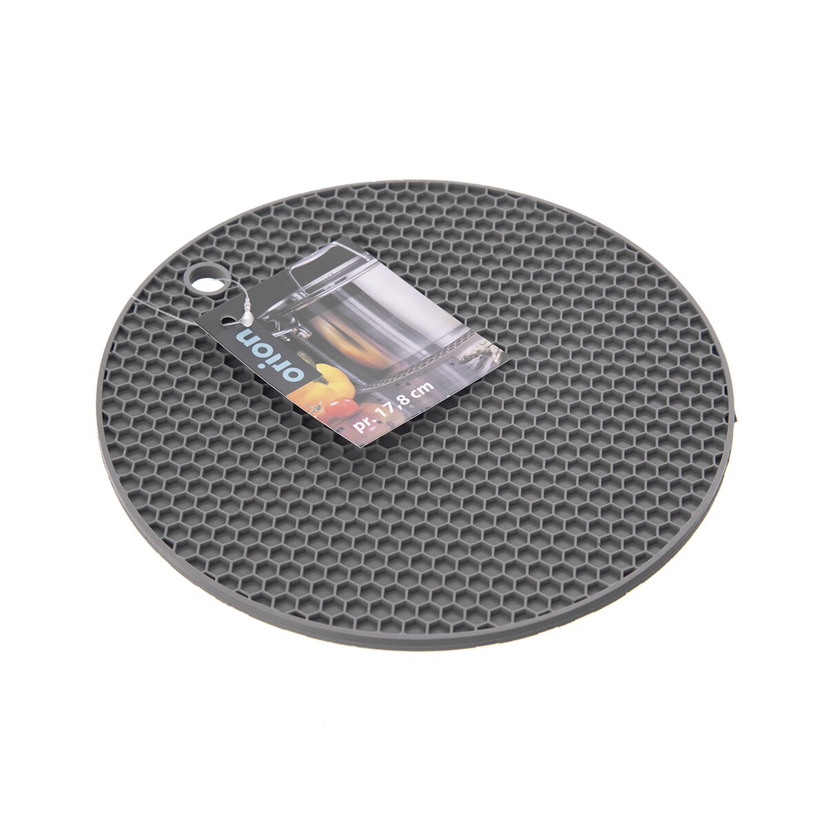 Kód produktu 121577Šedá silikonová podložka o průměru 17,8 cm je určena k ochraně pracovní plochy či stolu při pokládání horkých nádob s připraveným pokrmem.