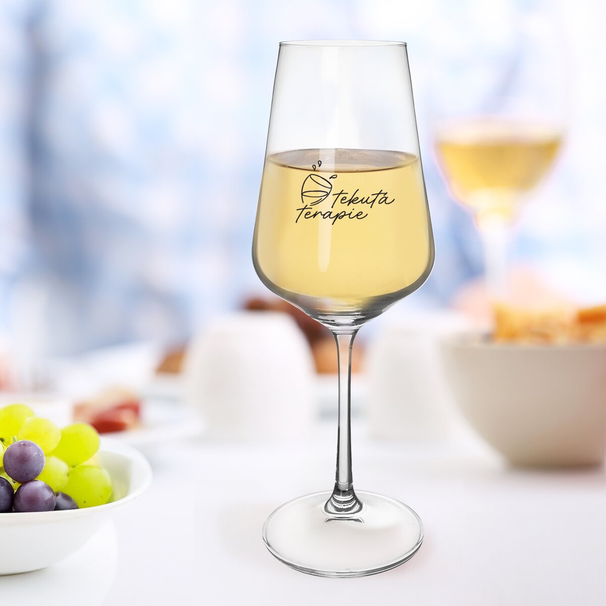 Kód produktu 145129Originální sklenice na víno o objemu 0,35 l je vyrobena z českého skla. Zdobí ji nápis "Tekutá terapie". Známka Bohemia Crystal je zárukou kvality a poctivé české výroby.