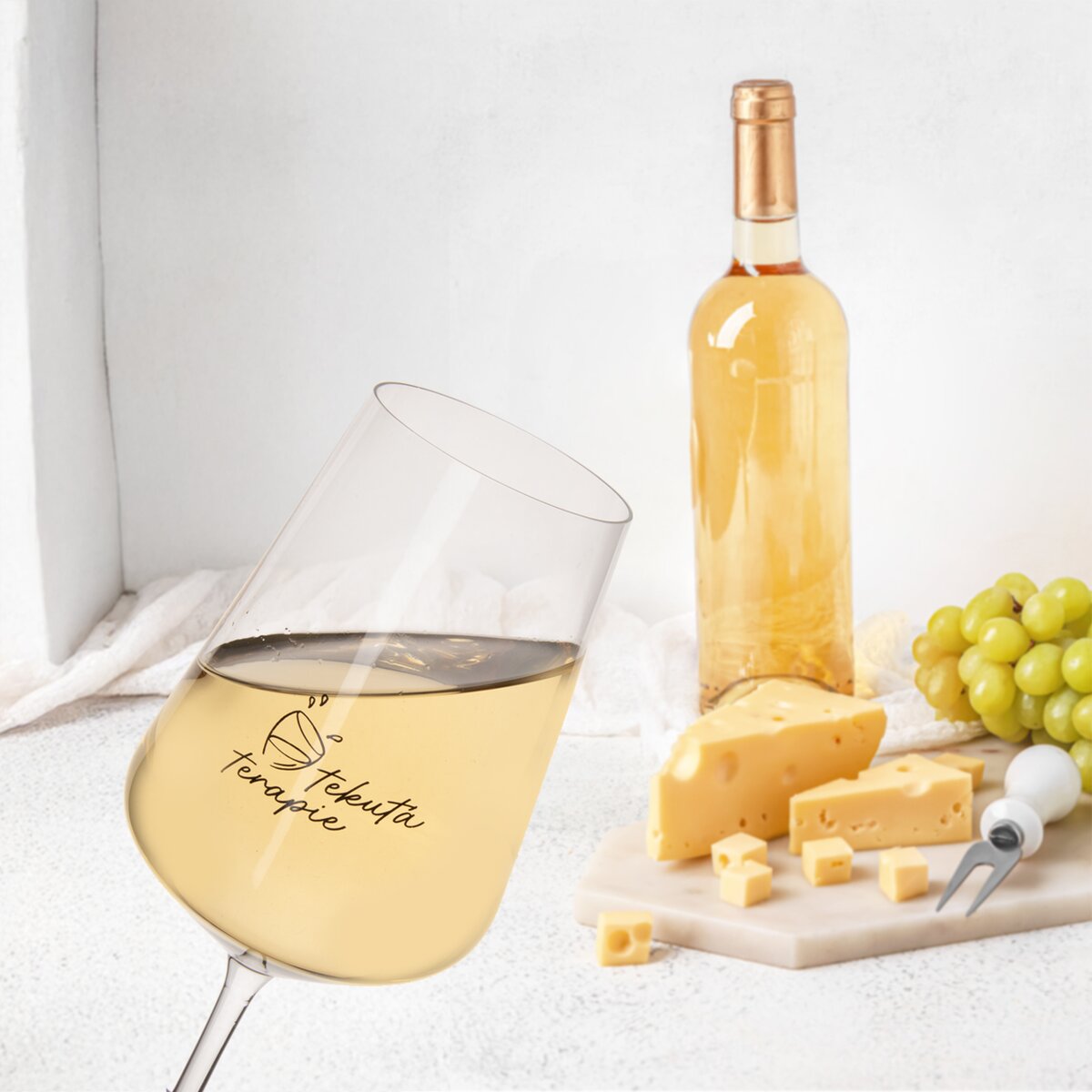 Je vyrobená z kvalitního křišťálového skla Bohemia Crystal, za jehož výrobou stojí česká sklárna Crystalex. Kalich je na vysoké stopce, aby víno zbytečně neteplalo dotykem rukou a mohlo se s ním lehce zakroužit.