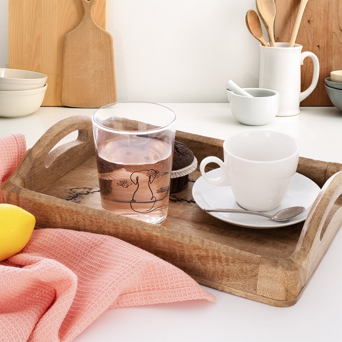 Tuto sklenici zdobí dekor pejska, kreslené v jednom tahu, která je dílem našich designérů.