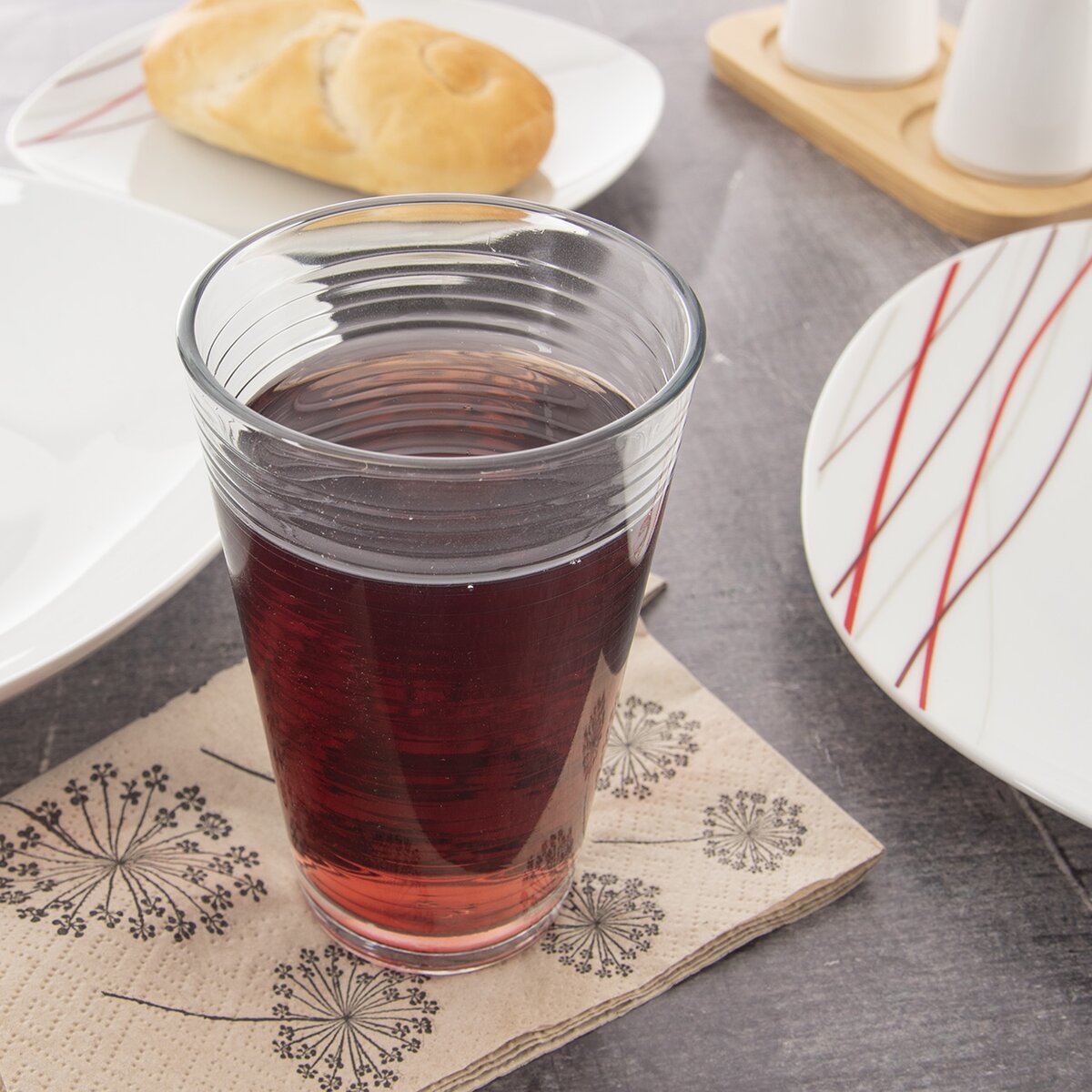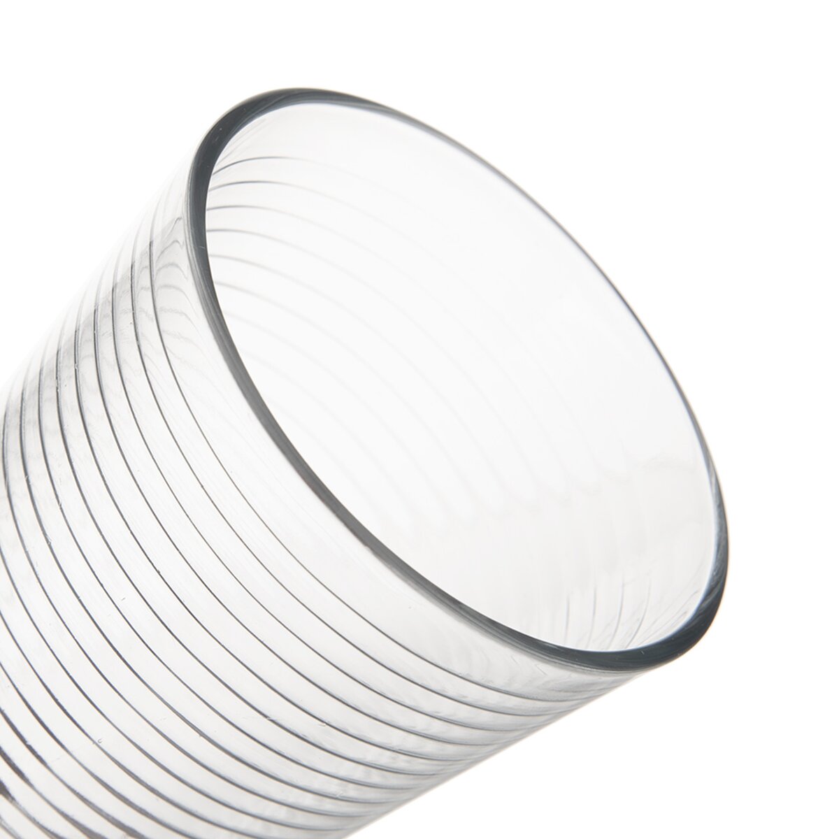 Menší sklenice se hodí na vodu, džus, šťávu i míchaný drink. Drobné vroubky, plastický dekor vytváří zajímavý design, který oživí stolování doma, v práci i na terase u bazénu.