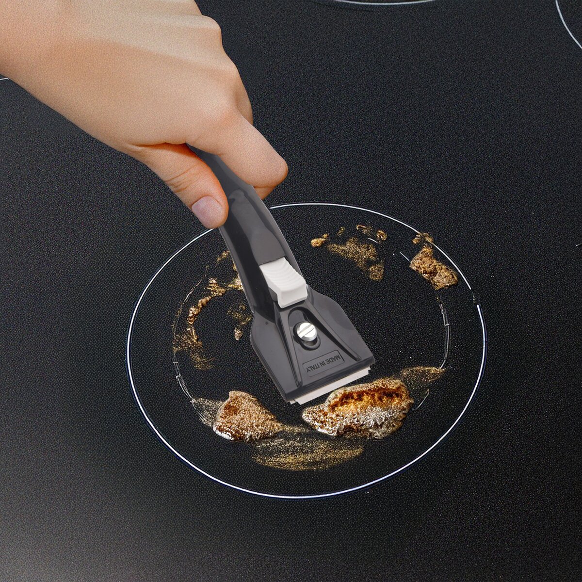 Škrabka Vám pomůže odstranit napečené a zaschlé nečistoty ze sklokeramické desky, zbytky samolepek ze skleněných povrchů apod.