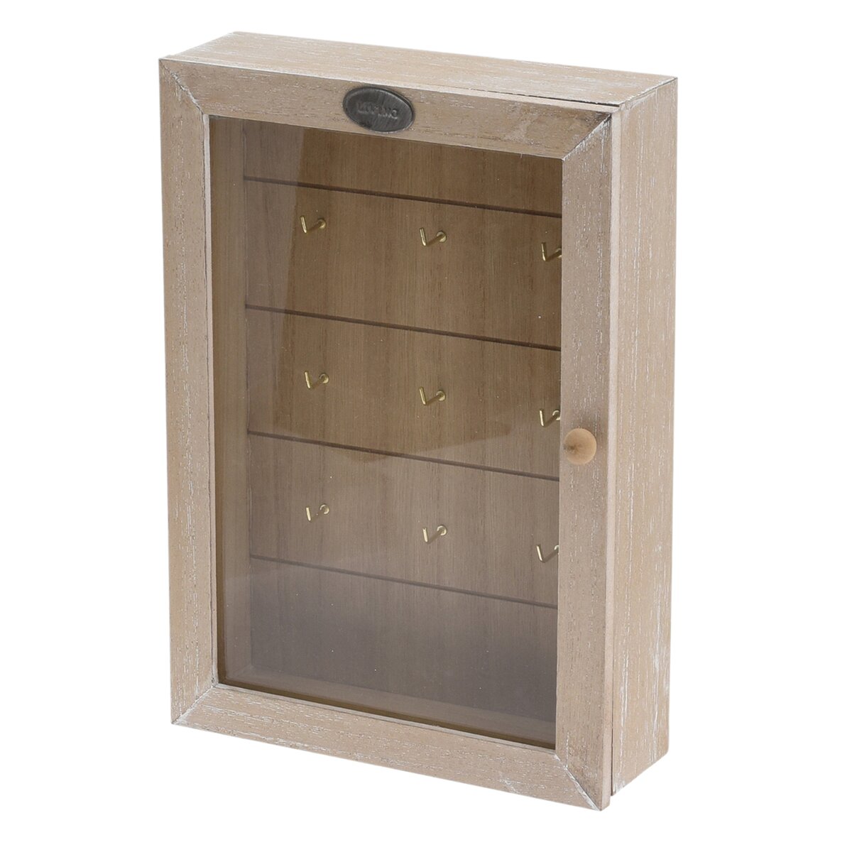 Kód produktu 510235Dřevěná skříňka na klíče, velikosti 27x19x6,5 cm, uspořádá všechny svazky a vy budete mít díky prosklené přední části dobrý přehled.