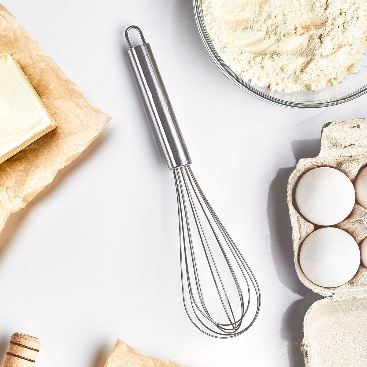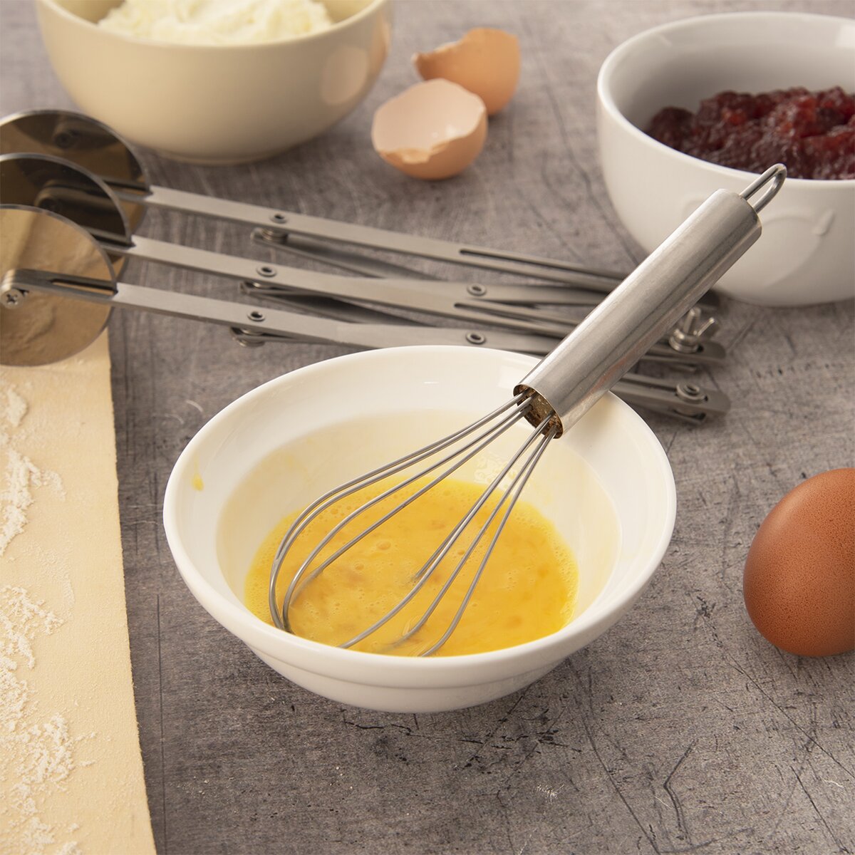 Šlehací nerezová metla o průměru 4 cm, pro rychlé a snadné ruční šlehání a provzdušnění. Pomůže s přípravou sněhu z bílků, jemných hladkých krémů, bešamelu, při přípravě pudinku, řídkých těst, míchaných vajec i majonézy.