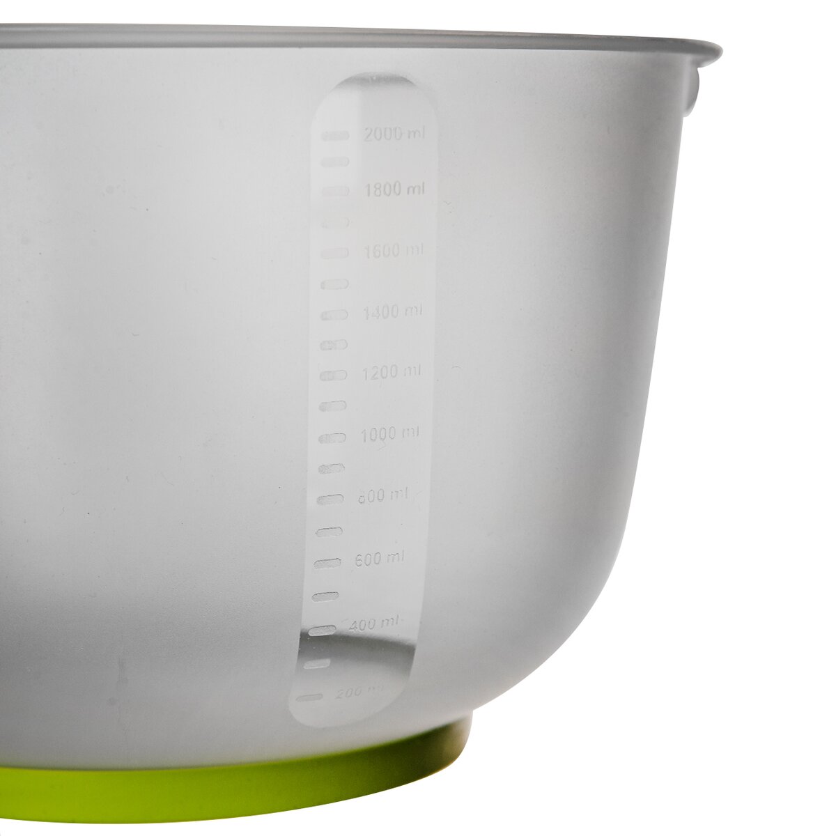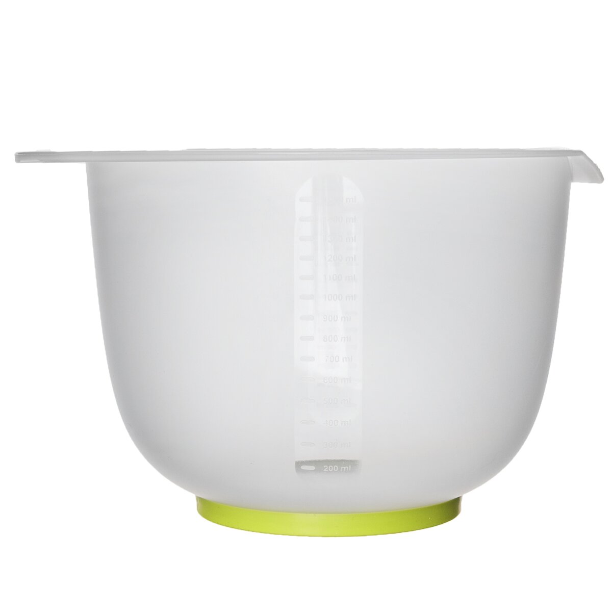 Kód produktu 120282Plastová mísa o objemu 2 l s výlevkou, měkčeným úchytem a protiskluzovým dnem pro snadné šlehání bílků, šlehačky, krémů i těsta. S vyznačenou měrnou stupnicí.