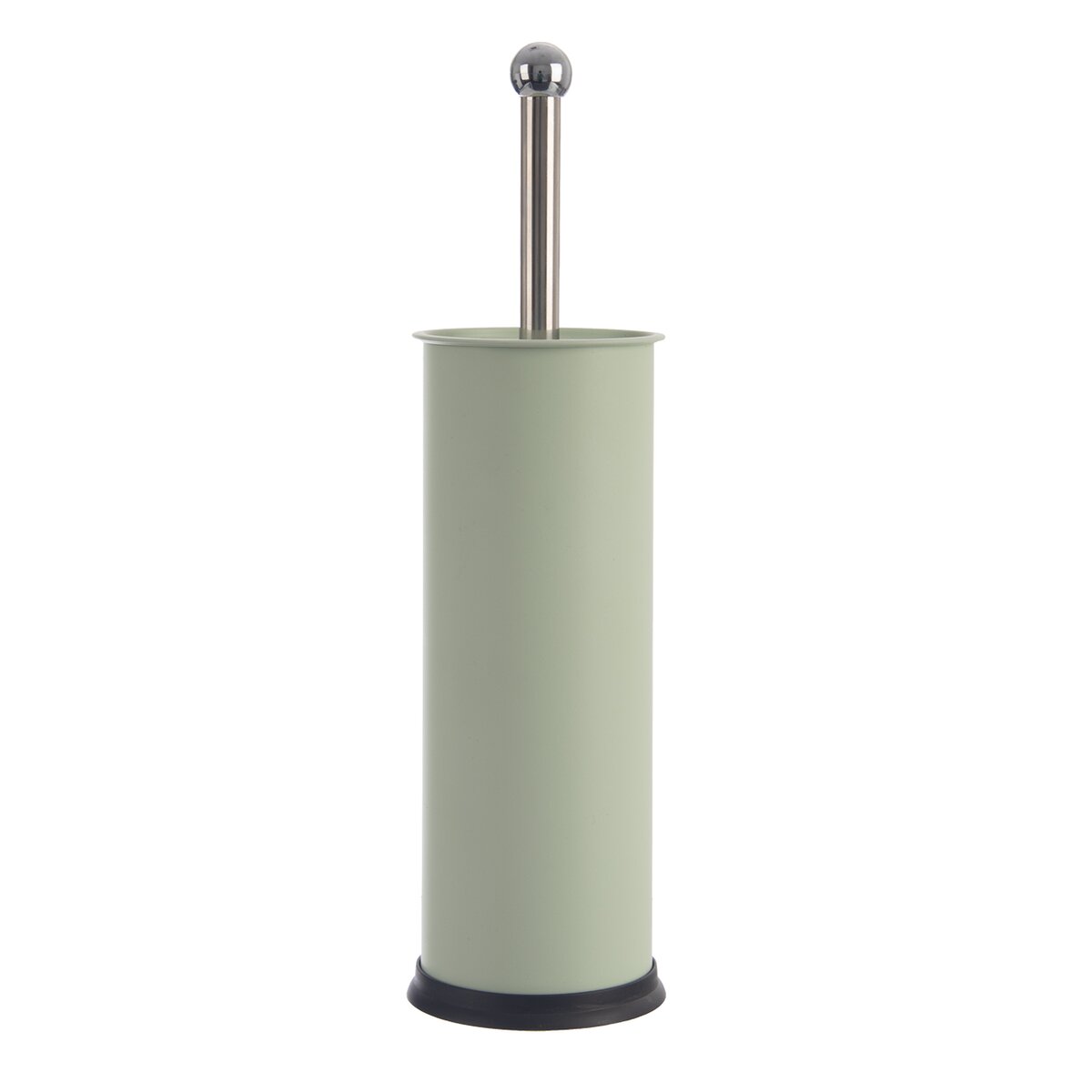 Souprava z kolekce GREENISH patří k základnímu vybavení, spojuje nadčasový design a praktické využití. Plastová štětka je kryta víčkem. Její uložení v nádobě o průměru 10 cm v tlumeném zeleném odstínu (plech s povrchovou úpravou) bude hygienické a estetické zároveň. Rukojeť je vyrobena z nerezové oceli.