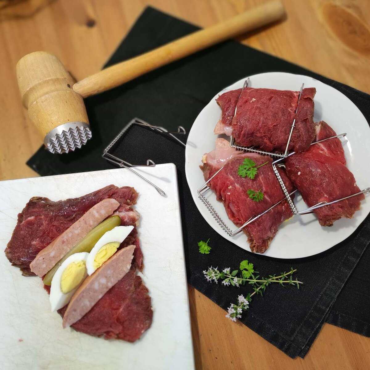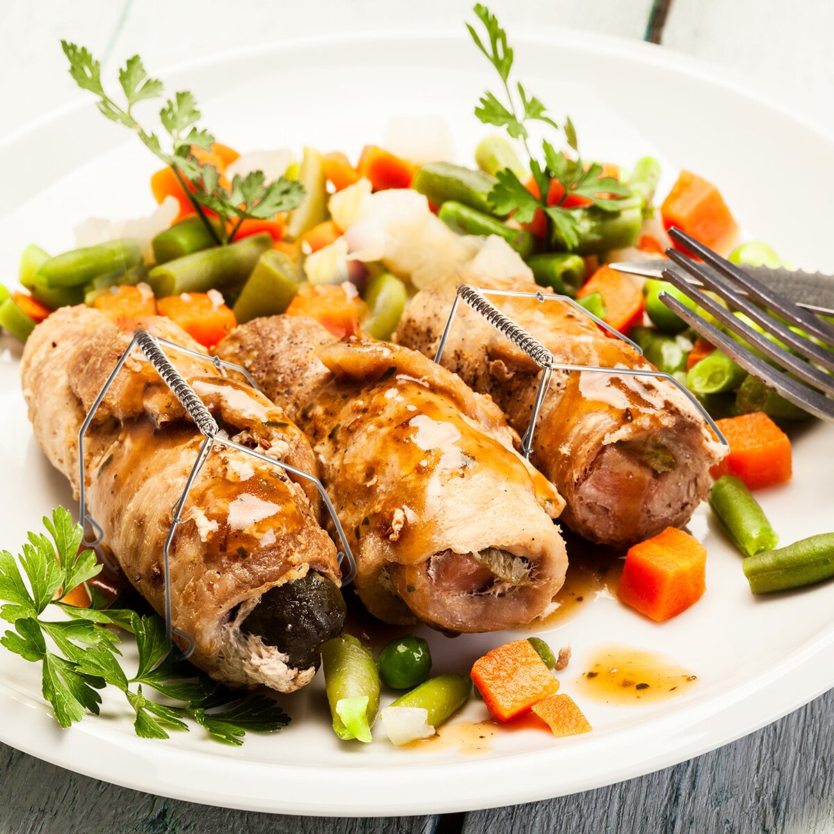 Příprava špaňelských ptáčků z hovězího masa, kapustových závitků nebo miniroládek z masa či zeleniny může být jednodušší. Nerezovou sponu stačí jednoduše rozevřít a do prohnutých ramínek upevnit závitek.