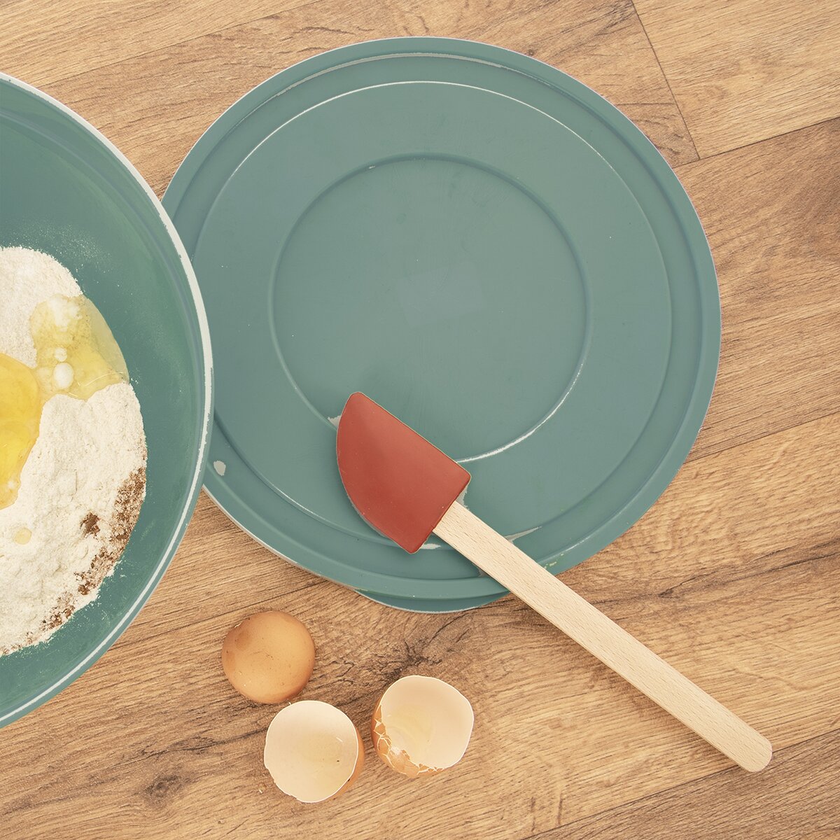 Kód produktu 142801Pružná gumová stěrka s dřevěnou rukojetí celkové délky 26 cm umožní přípravu, roztírání těsta, krémů i polev.