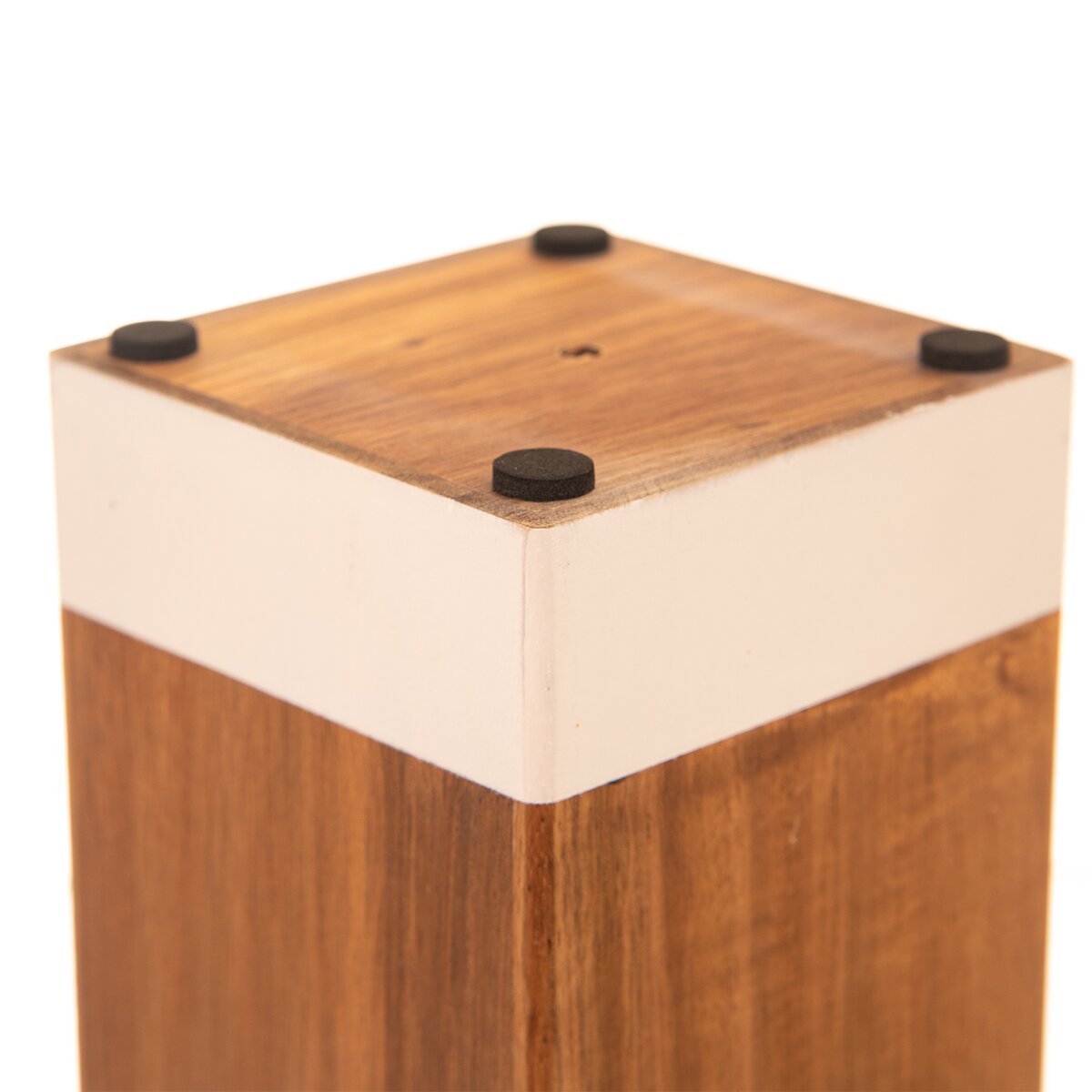Příjemné masivní provedení z akáciového dřeva v kombinacím s bílým nátěrem stojanu dobře zapadne do tradiční i moderní kuchyně.