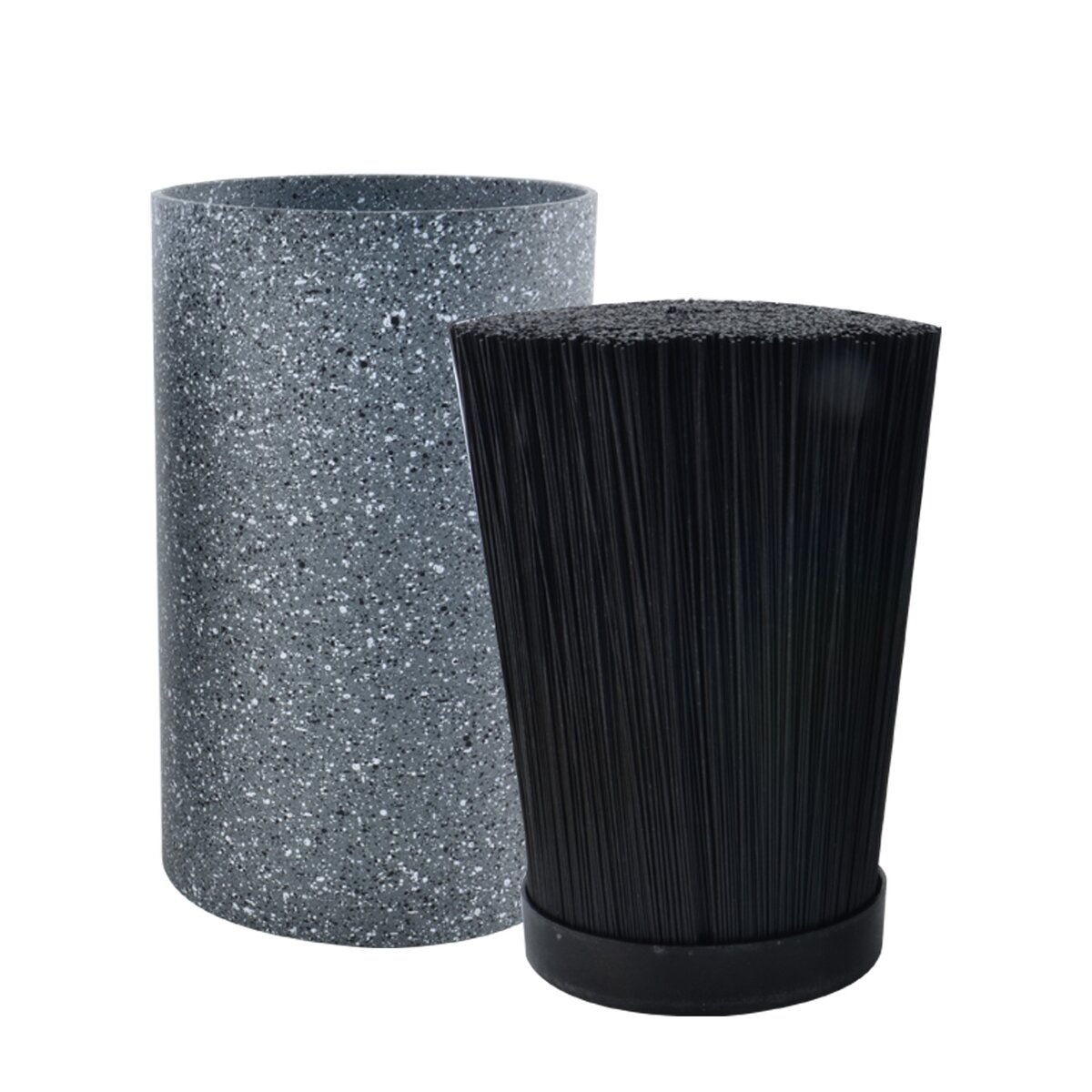 Kód produktu 540553Kulatý plastový stojan na nože pr. 9 cm vzhledu mramoru se syntetickými štětinami k uložení kuchyňských nožů i nůžek.