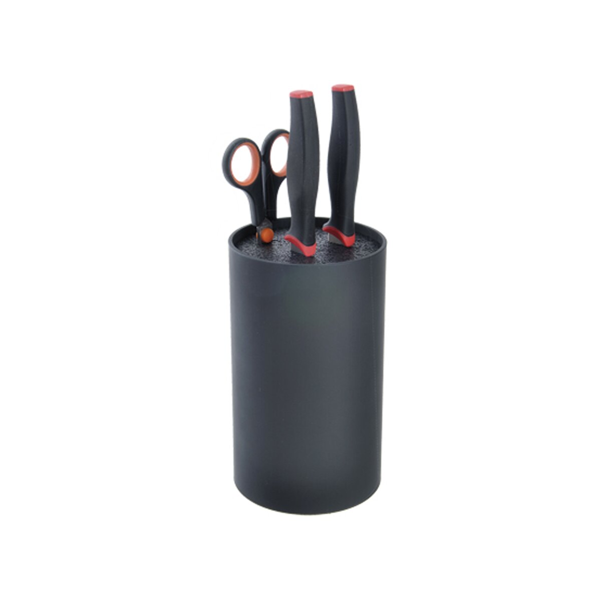 Kód produktu 540517Kulatý plastový stojan na nože pr. 11 cm se syntetickými štětinami k uložení kuchyňských nožů i nůžek.