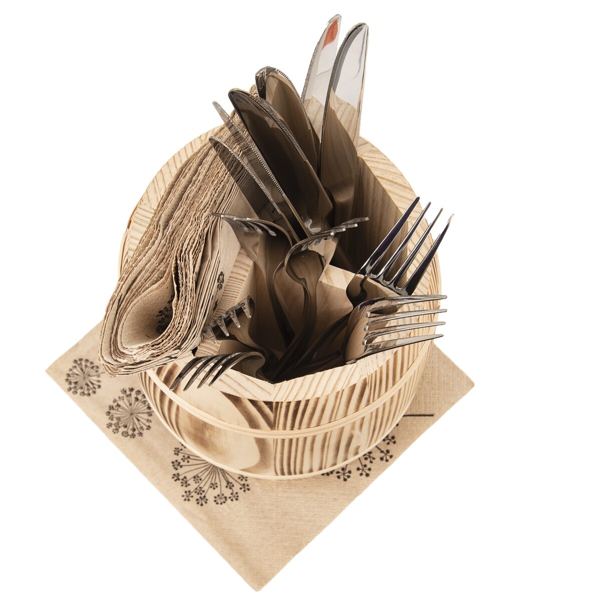 Kód produktu 122972Stojan na příbory z jedlového dřeva uskladní a zajistí jednoduché servírování příborů, ubrousků, nožů.