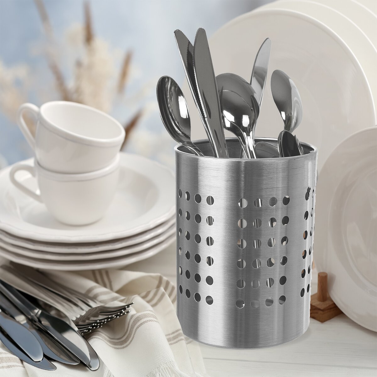 Praktický stojan, který napomůže udržet pořádek ve vaší kuchyni. Využijete ho nejen k odkládání příborů, ale i vařeček, obraceček a dalšího kuchyňského náčiní, které tak budete mít při vaření neustále po ruce.